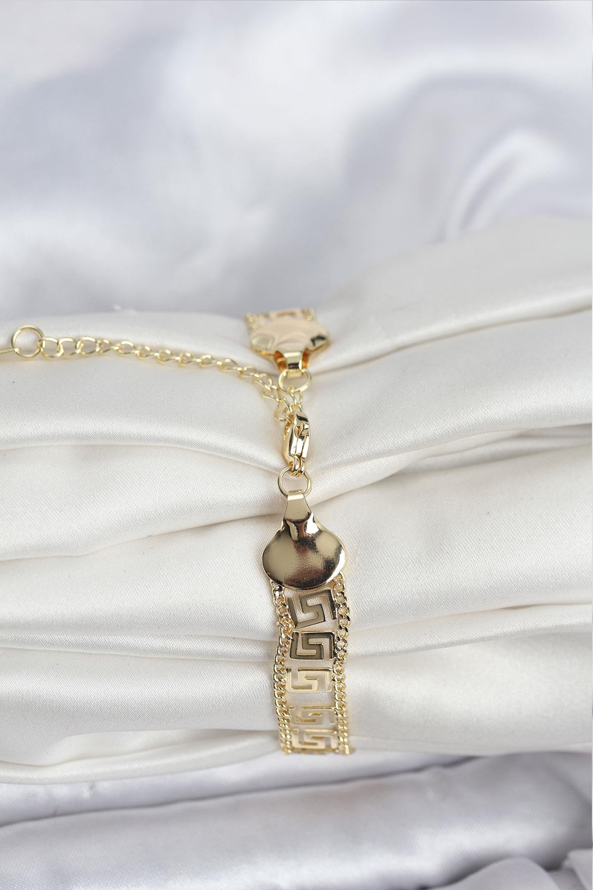 316L Çelik Gold Renk Labirent Model Kadın Bileklik (BB8158)