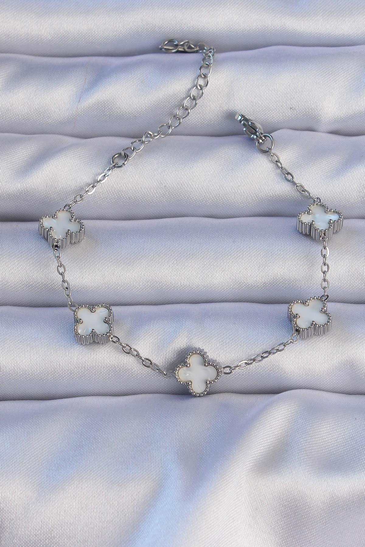 316L Çelik Gümüş Renk Mineli Yonca Model Bileklik (BB6302)