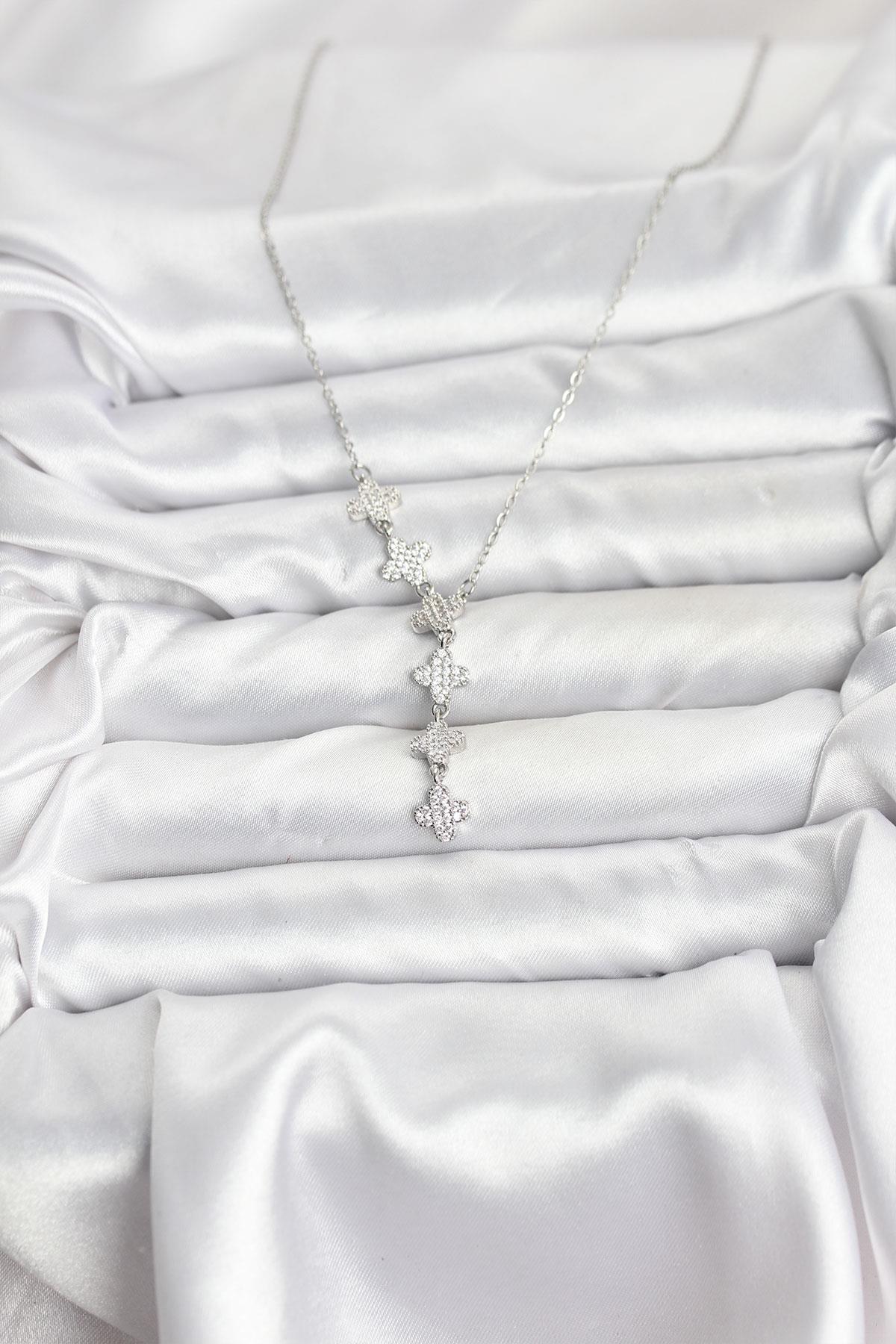 316L Çelik Zincir Gümüş Renk Yonca Model Kadın Kolye (BKO10675)