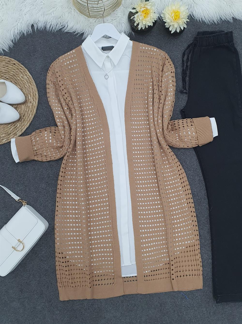 Ajurlu, düşük omuz, salaş hırka modelimiz yeni sezonun en çok sevilen modelleri arasında yer almaktadır.