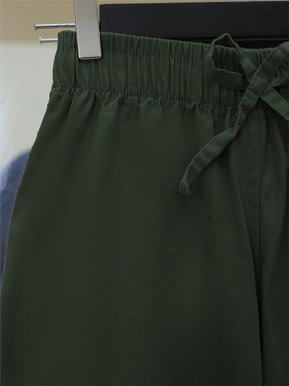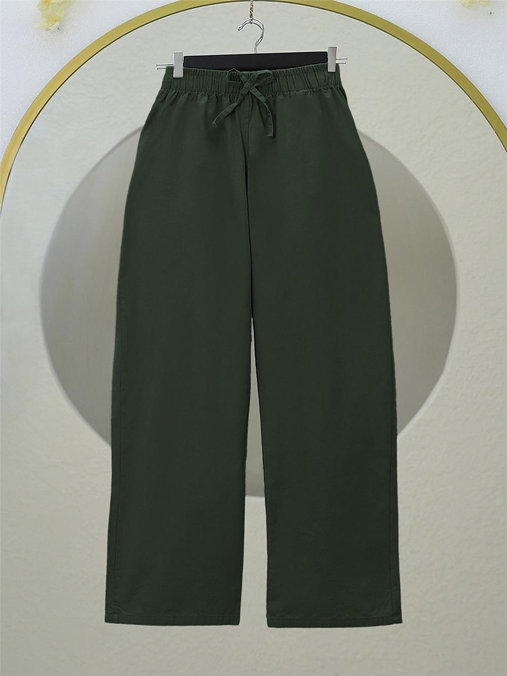 بنطال كتان بخصر مطاطي ومفصل بأرجل واسعة - كاكي (136-10015-R05)