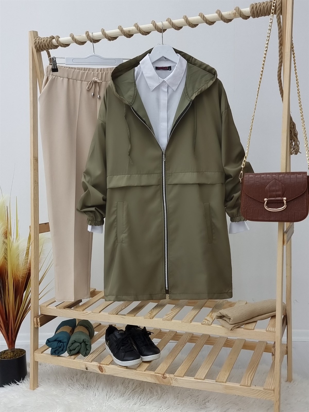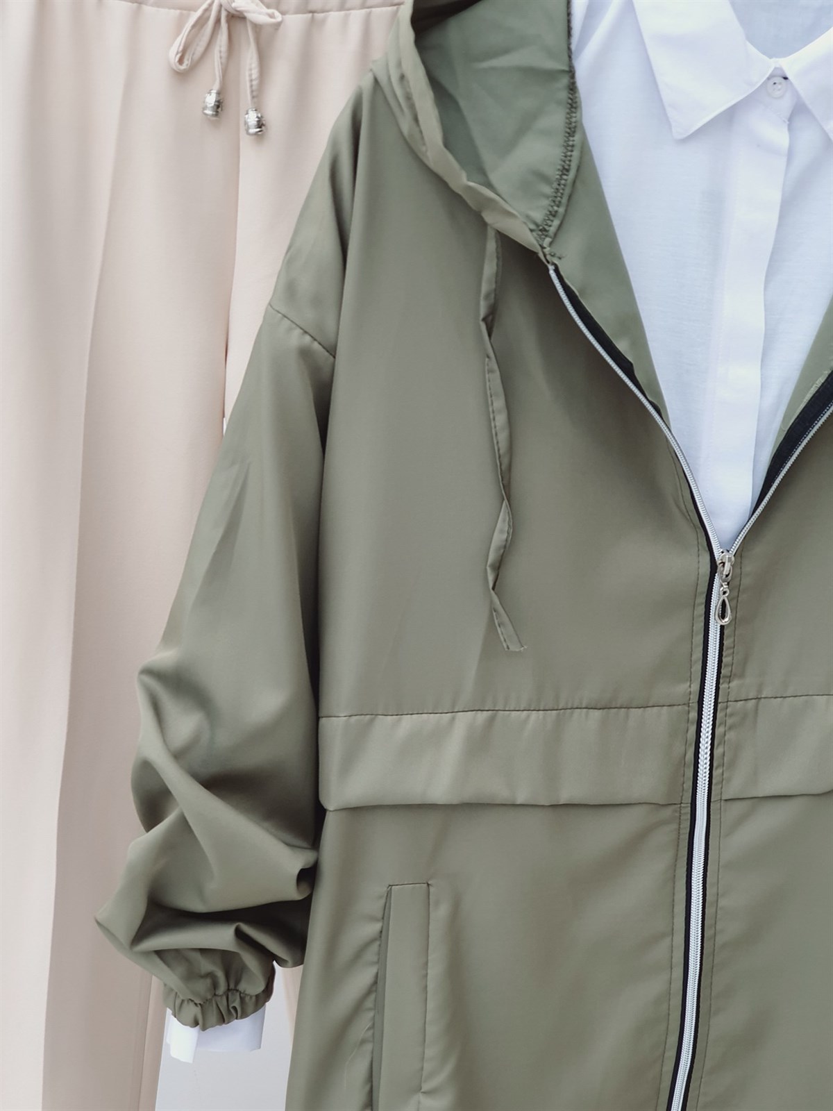 Baharlık Fermuarlı Yağmurluk -Haki (120-1372-R05)