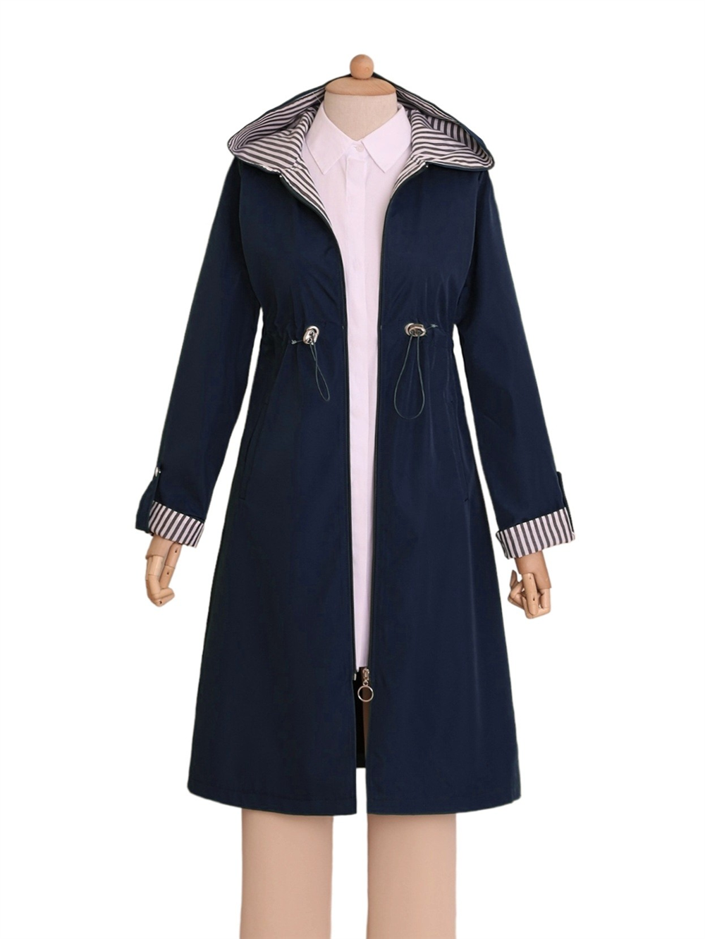 Hooded, Our trench coat model with 2 pockets, gathered waist and folded sleeves has taken its place among the most trendy models of the new season.