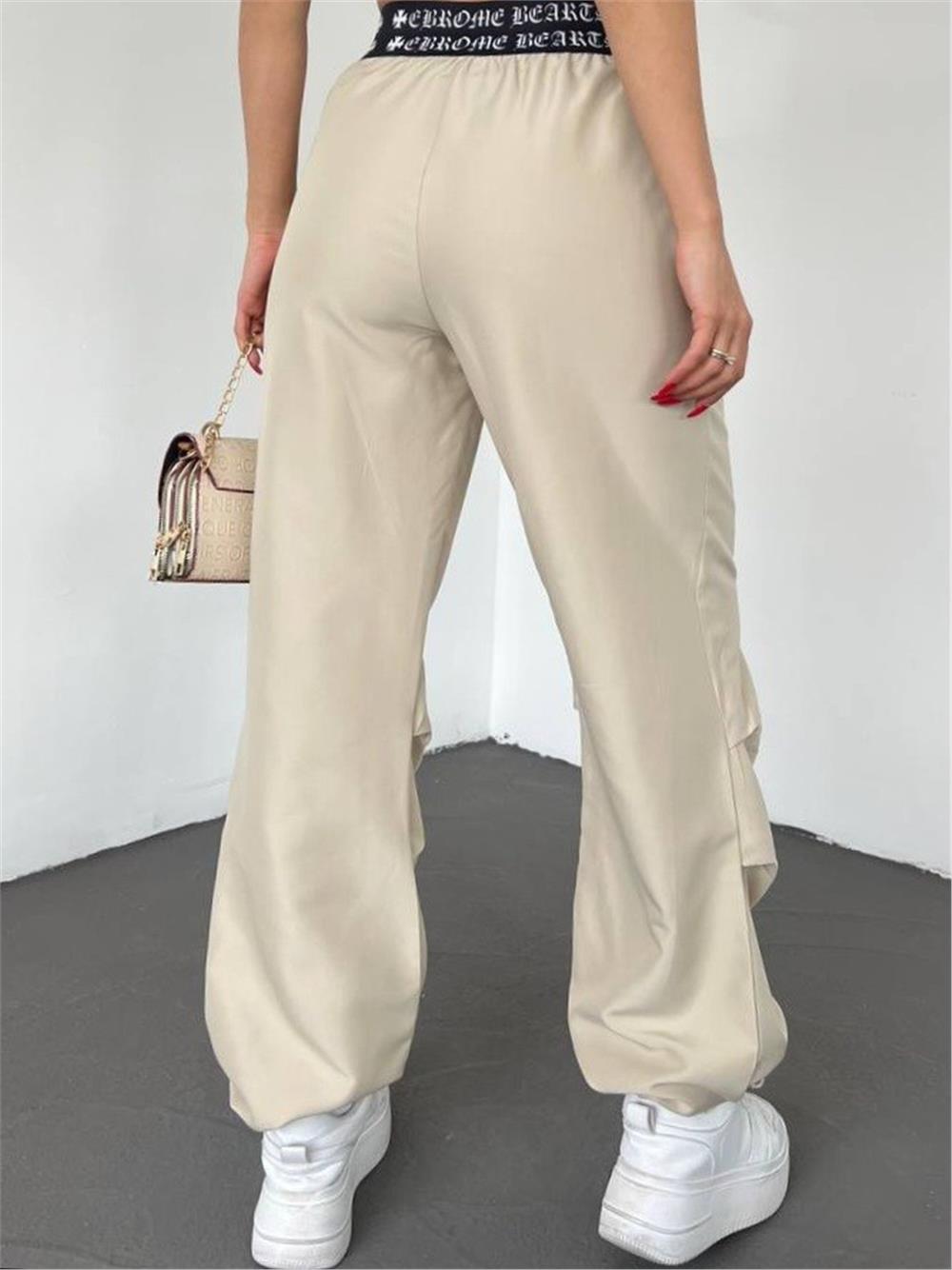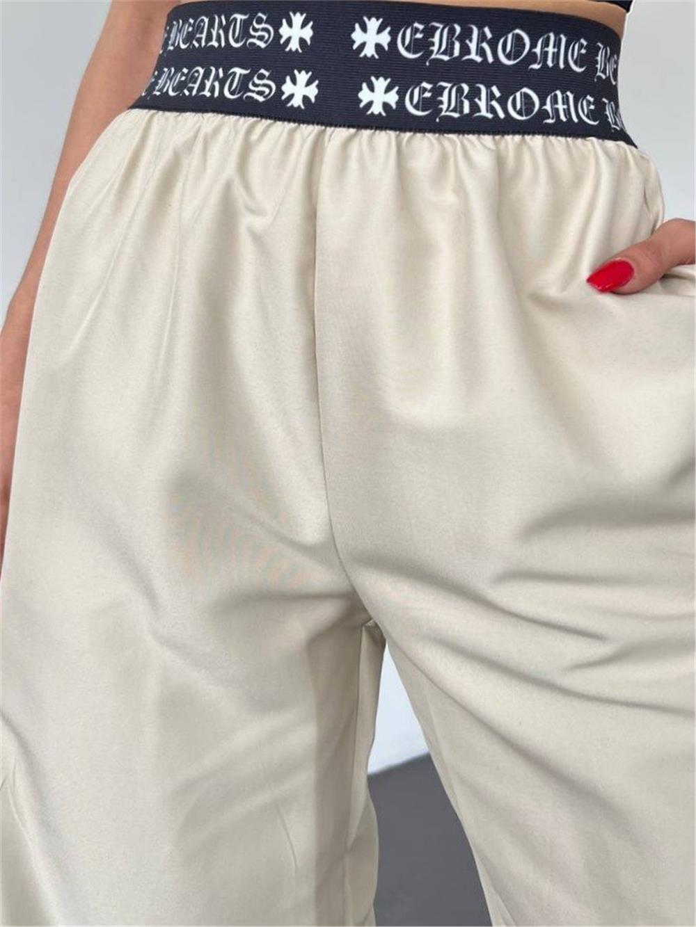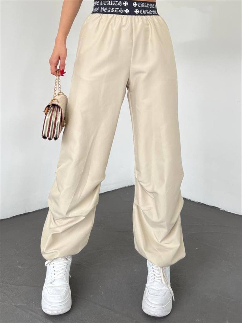 بنطال بأرجل مطاطية عند الخصر - بيج (358-10303-R56)