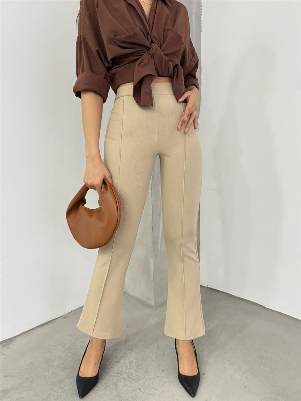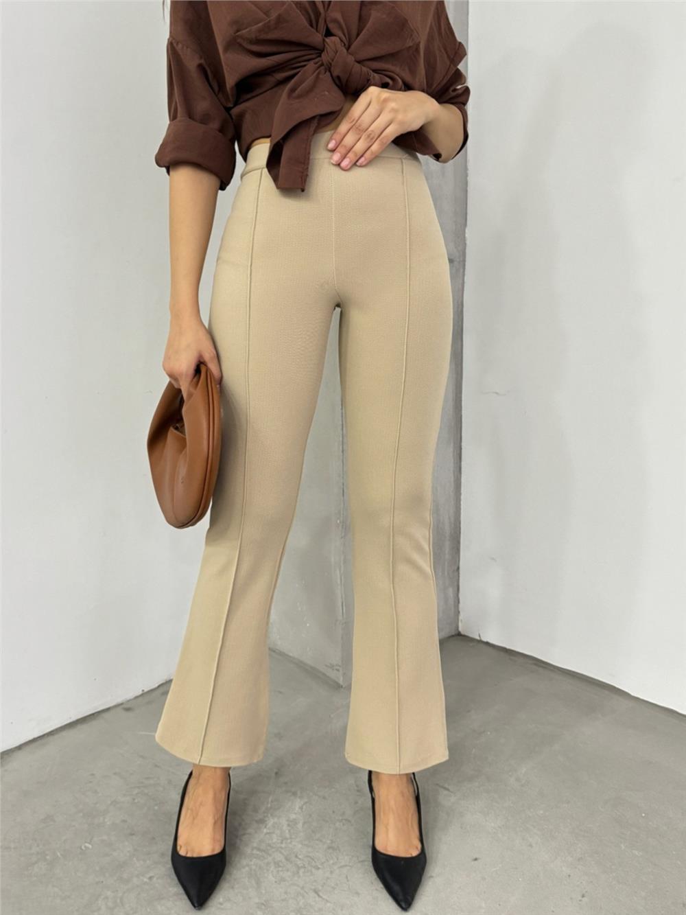 بنطلون ليكرا اسباني بخصر مطاطي - بيج (326-9092-R56)