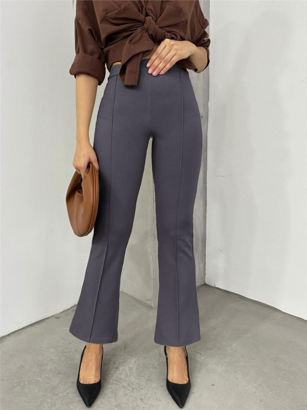 بنطلون ليكرا أسباني بخصر مطاطي - دخاني (326-9092-R18)