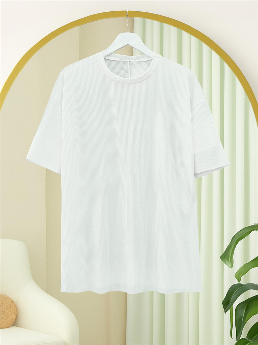 Bisiklet Yaka Fitilli Yırtmaçlı Tişort -Beyaz (153-3207-R02)