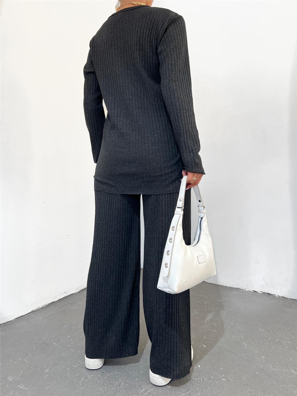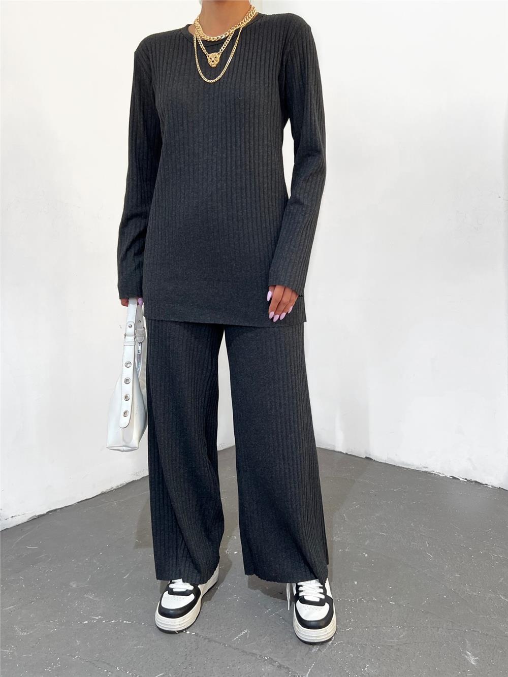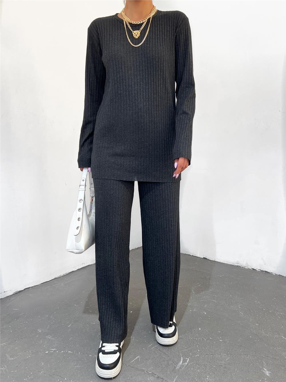 بدلة بروتيل برقبة دائرية - مدخن (136-5501-R18)