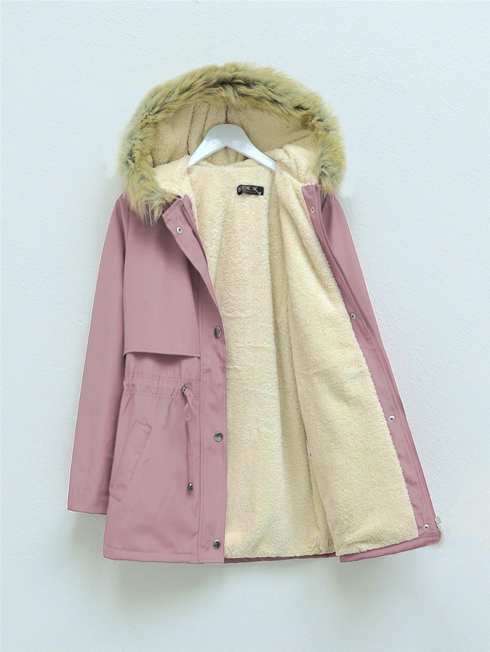 معطف بوليرو بغطاء للرأس من الفرو مع قطيفة من الداخل - مسحوق (148-2340-R06)
