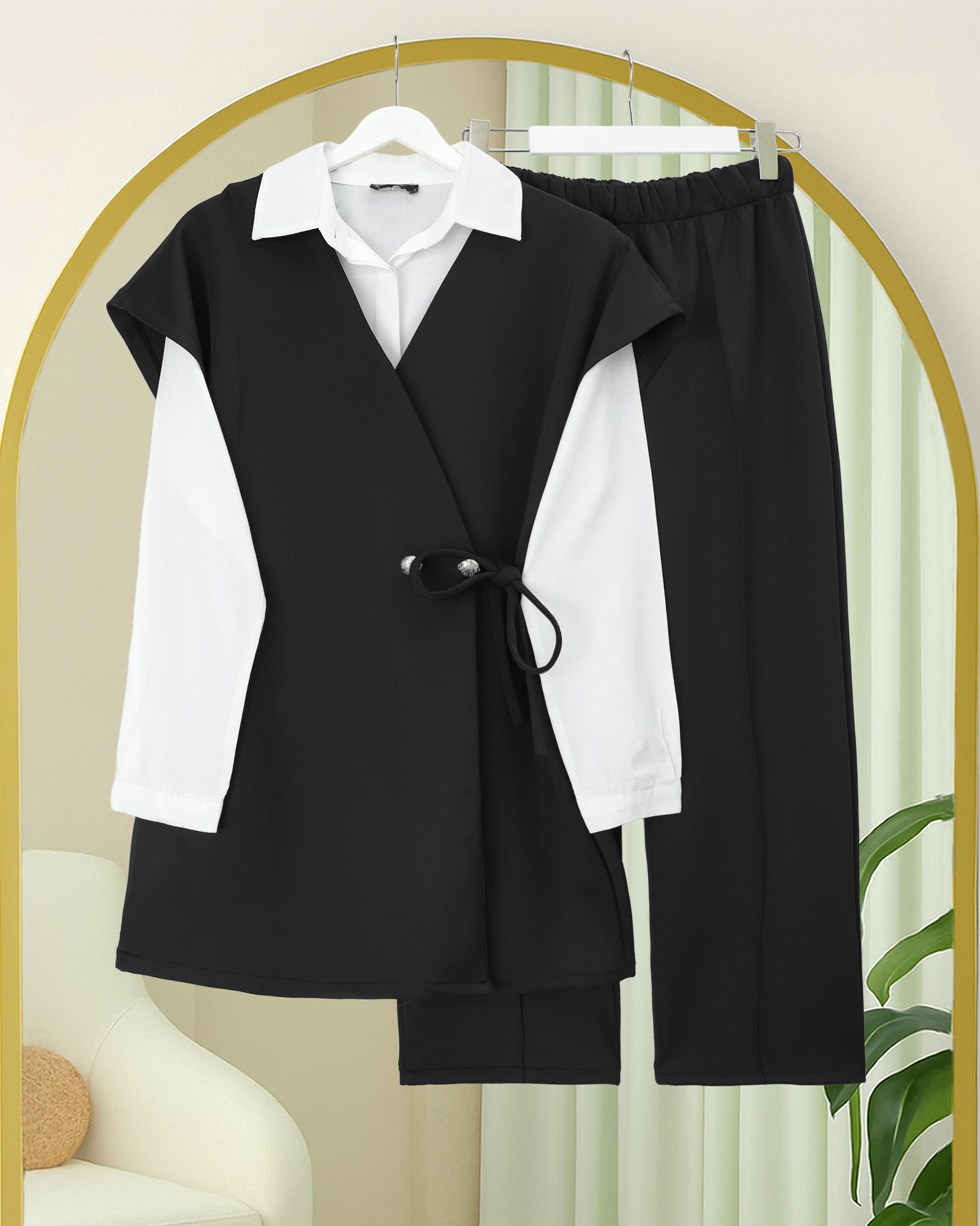 Çapraz Bağlamalı Kısa Kol Pantolonlu Scuba Takım -Siyah (349-8002-R01)