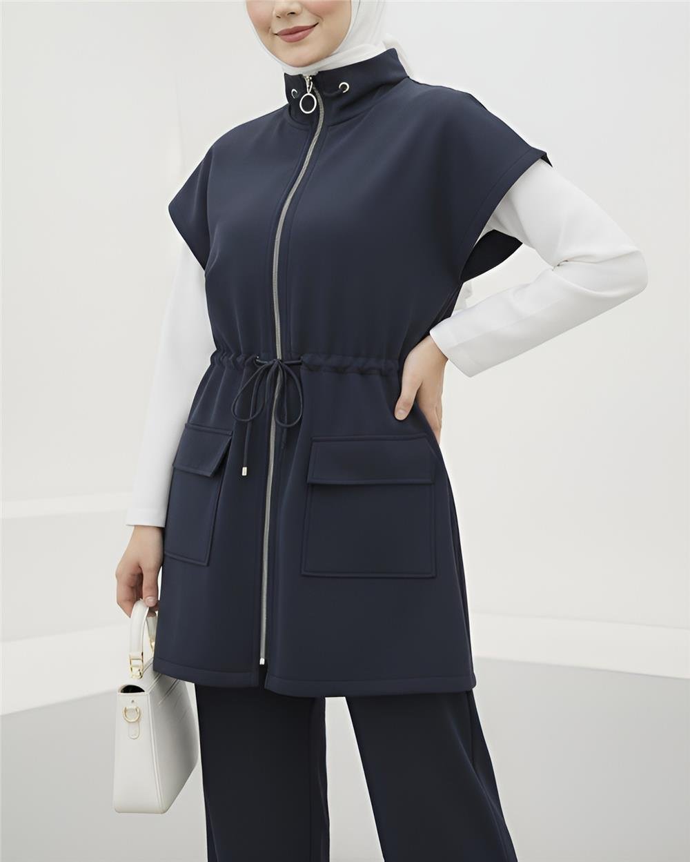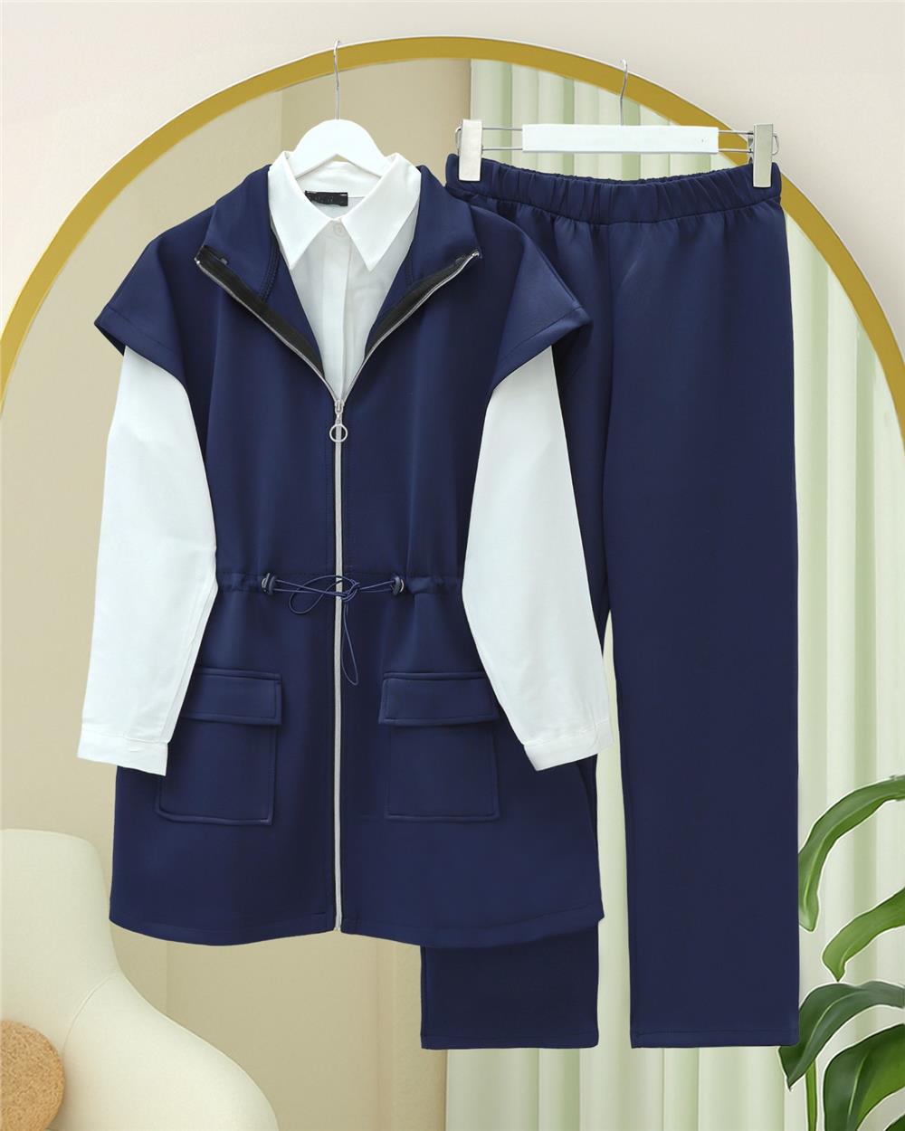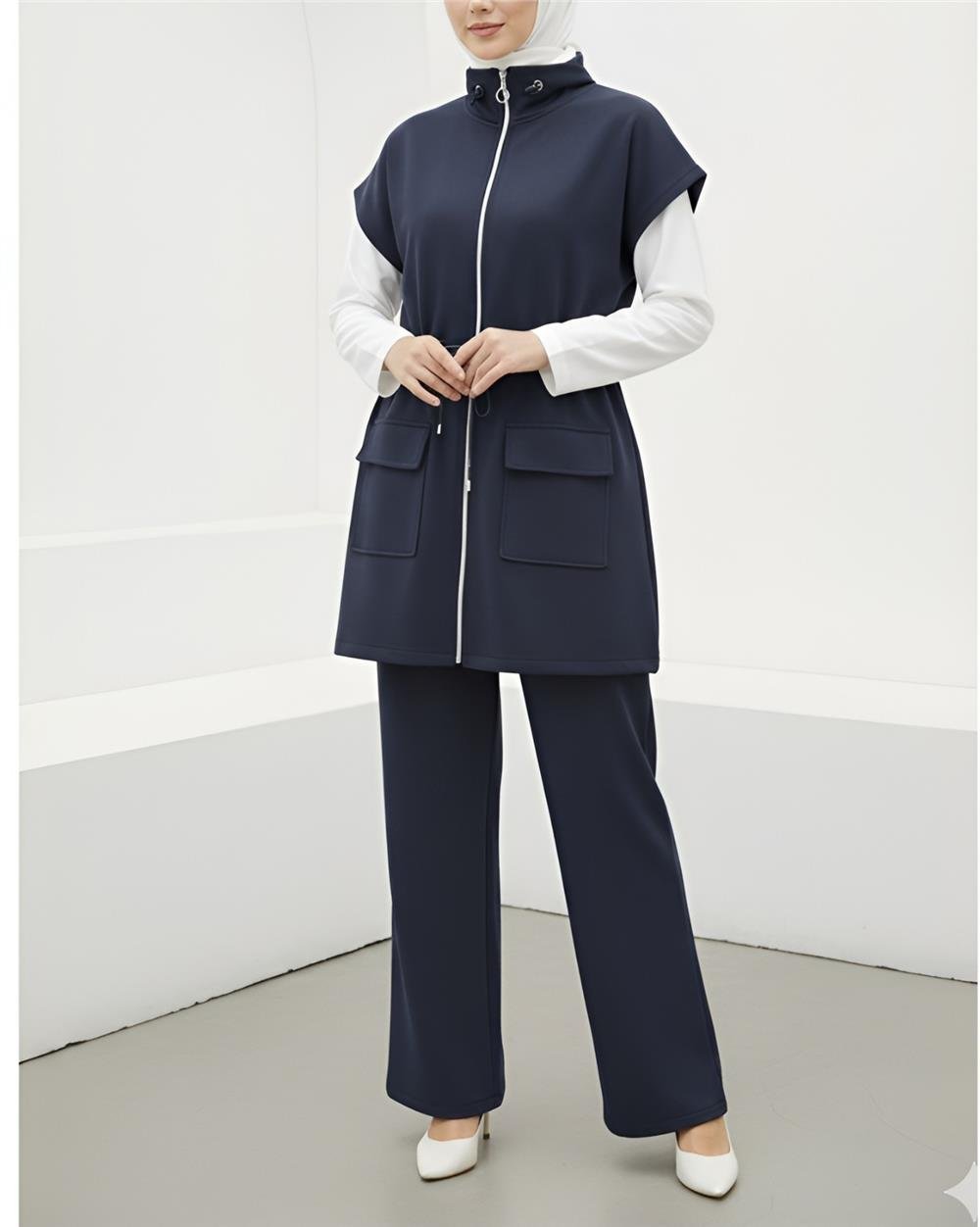 Çift Cepli Fermuarlı Lastik Detaylı Kısakollu Scuba Takım -Laci (349-7091-R03)