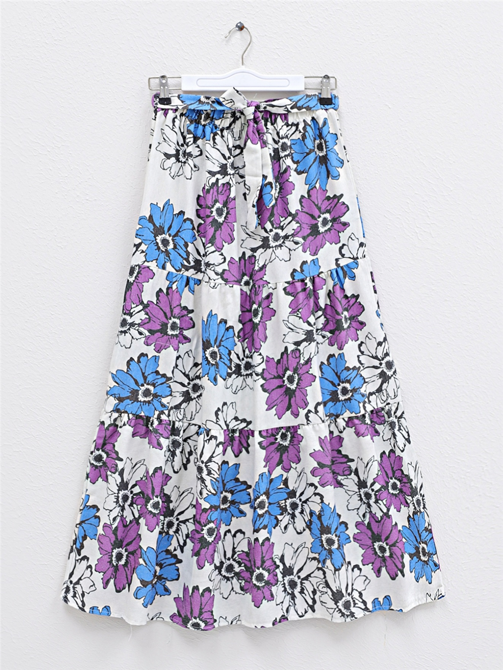 Desenli Kemerli Beli Lastikli Keten Etek -Mor (207-15381-R34)