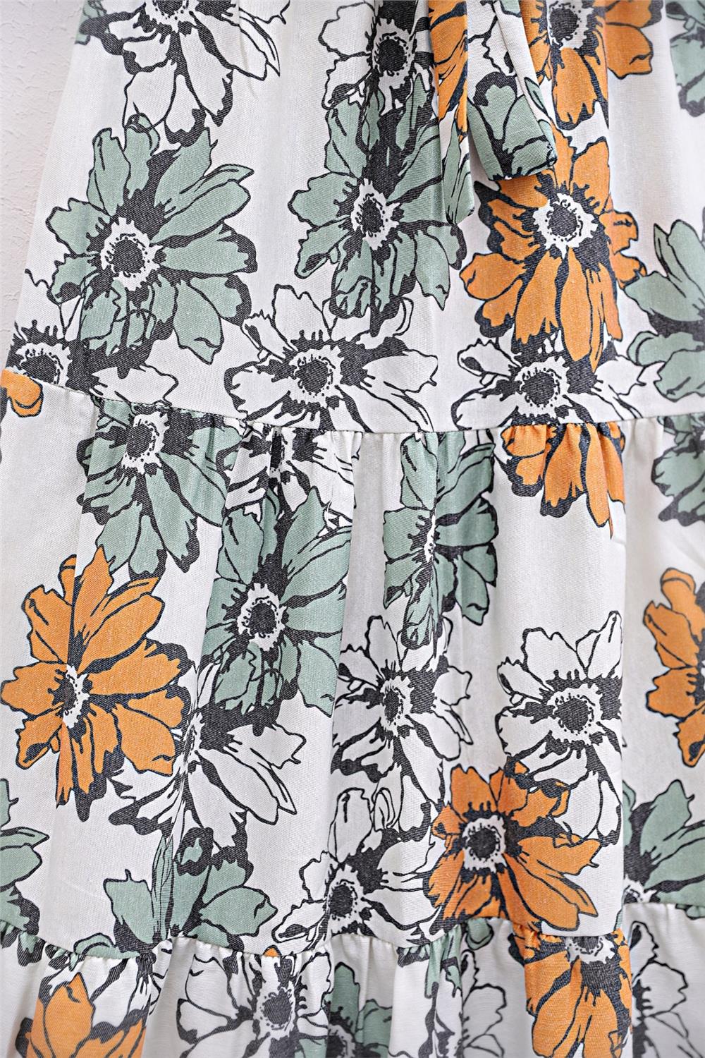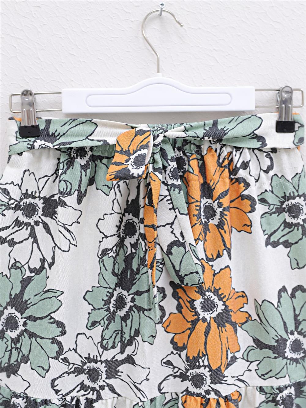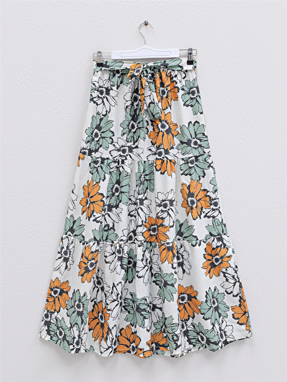 Desenli Kemerli Beli Lastikli Keten Etek -Yeşil (207-15381-R35)