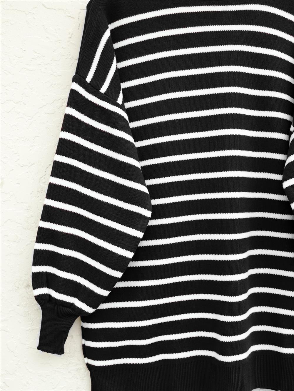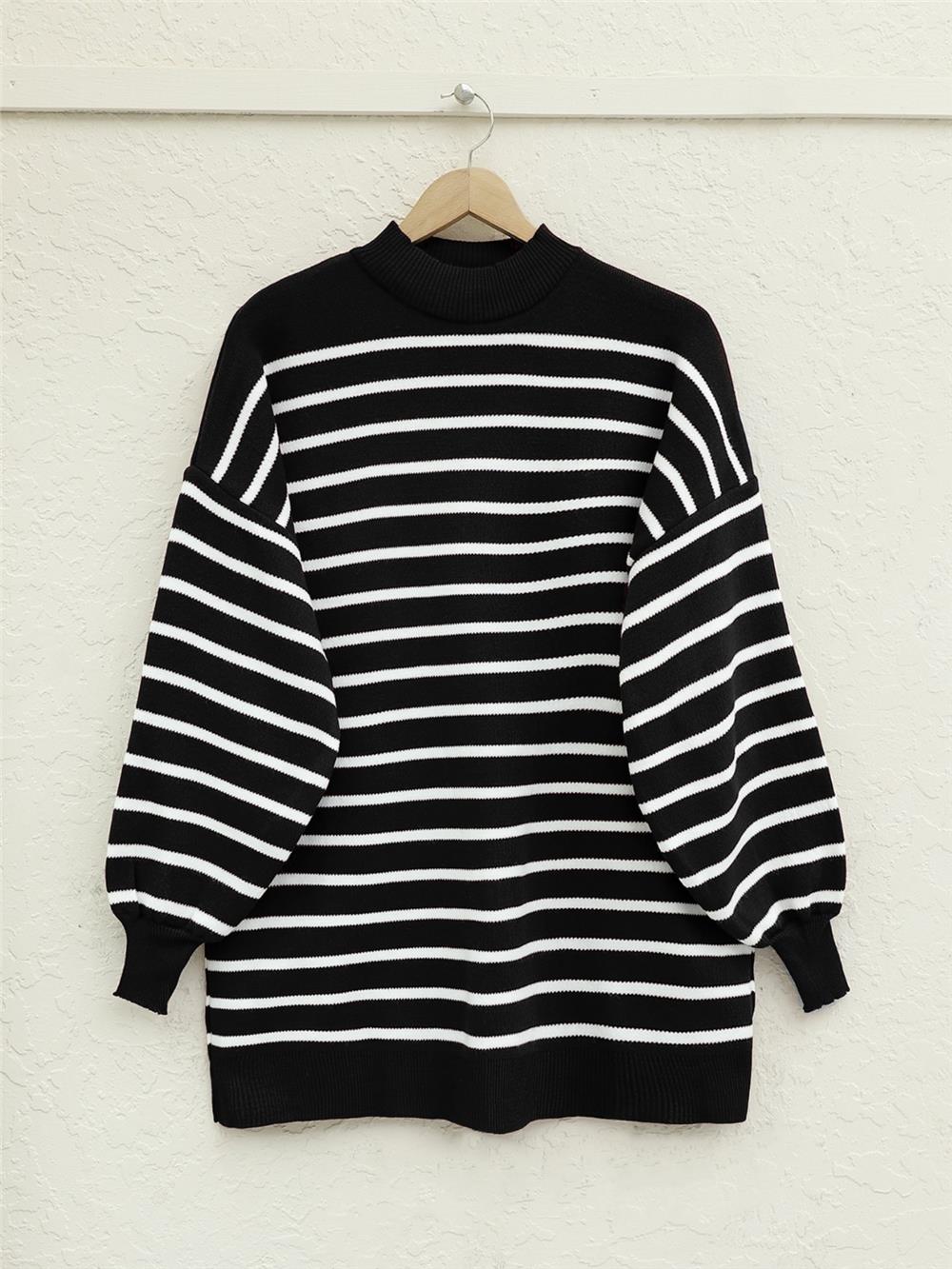 Dik Yaka Balon Kol Triko Tunik -Siyah (109-9863-R01)