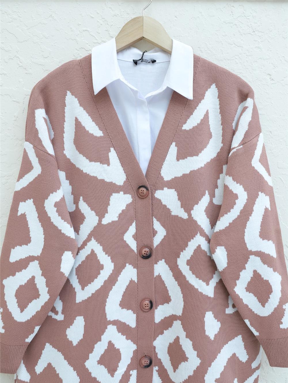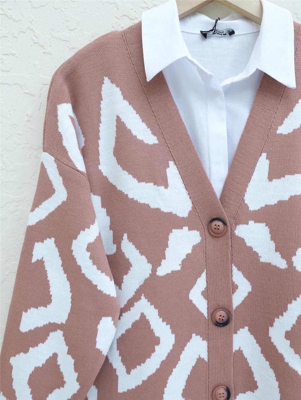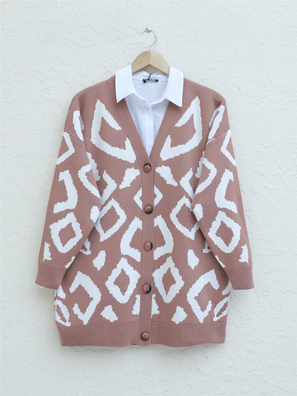 كارديجان تريكو منقوش بأزرار - جاف (384-200-R27)