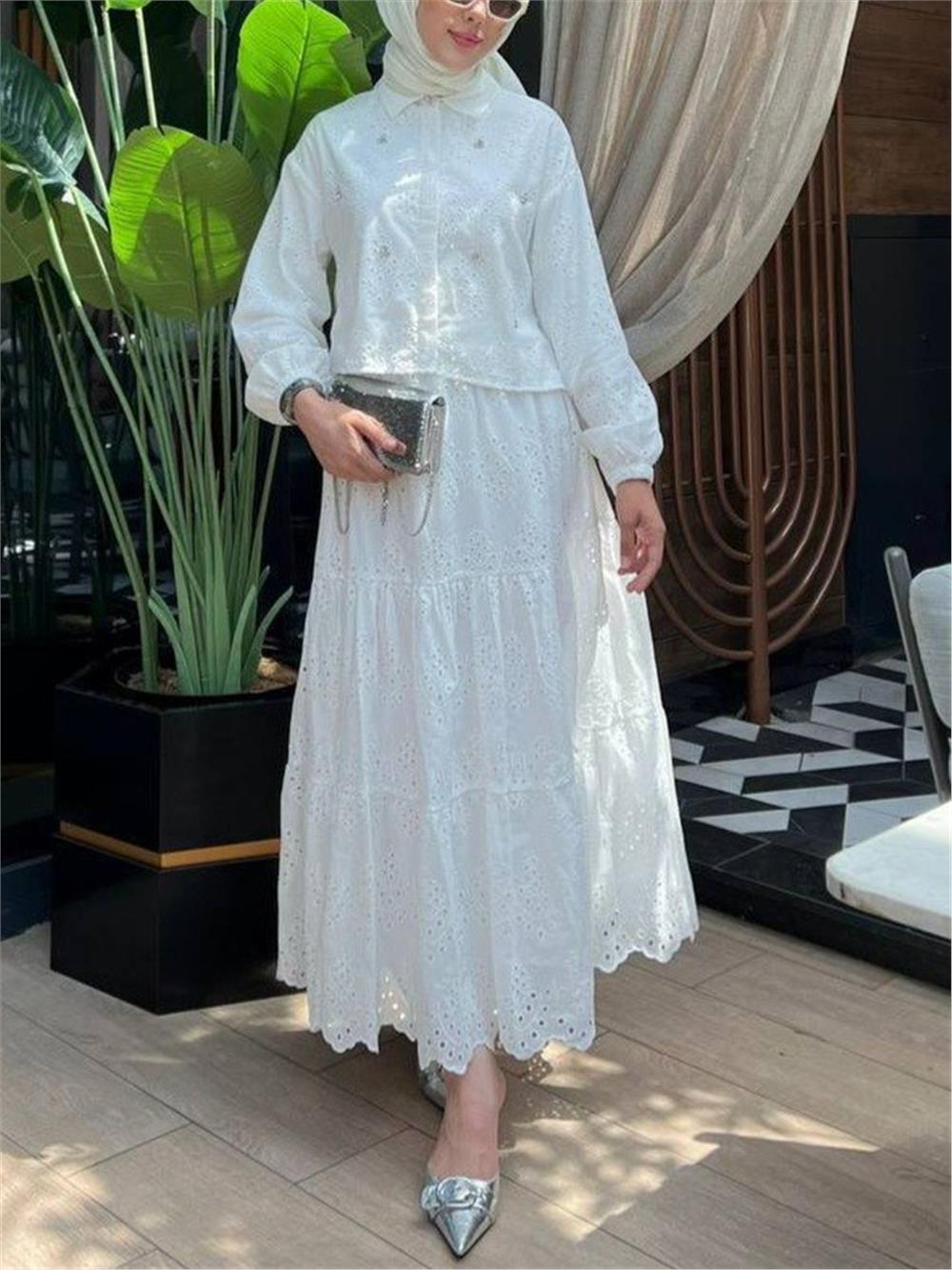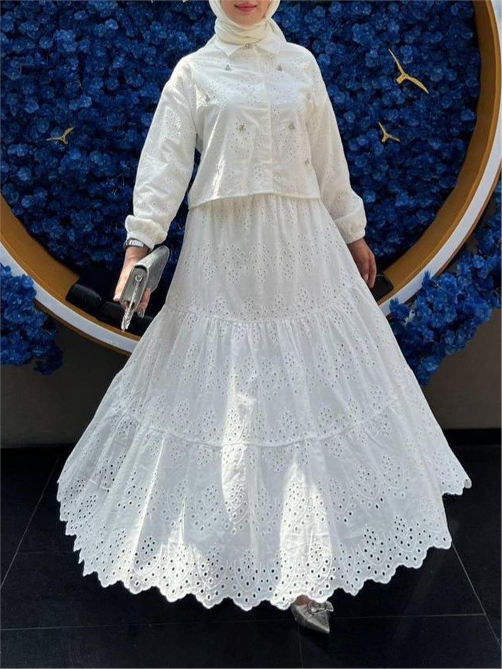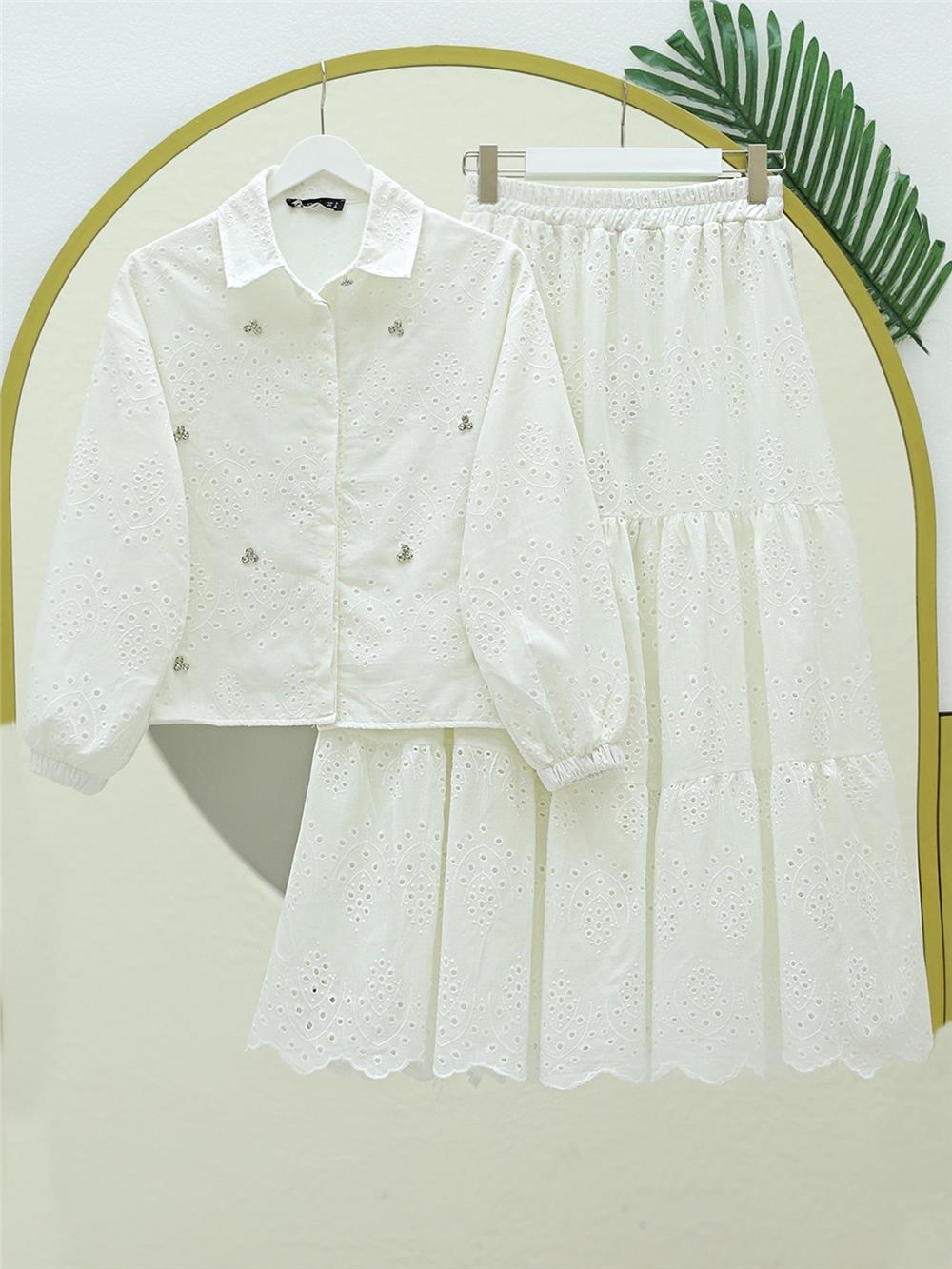 Fisto Detaylı Etekli Takım -Beyaz (144-1427-R02)