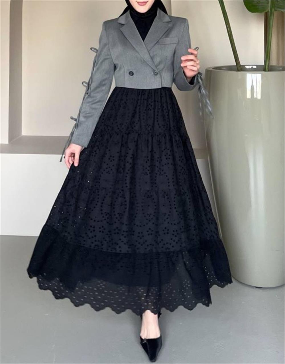 Fisto İşlemeli Katlamalı Etek -Siyah (144-1004-R01)