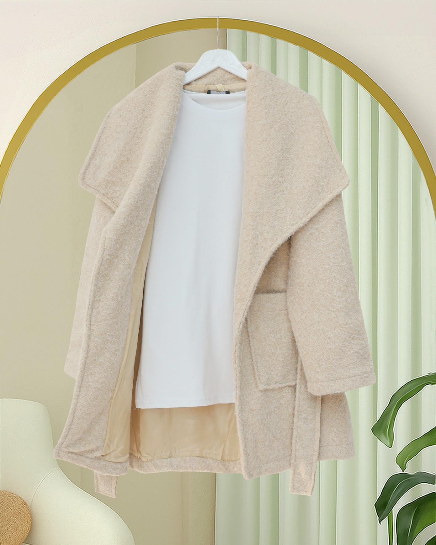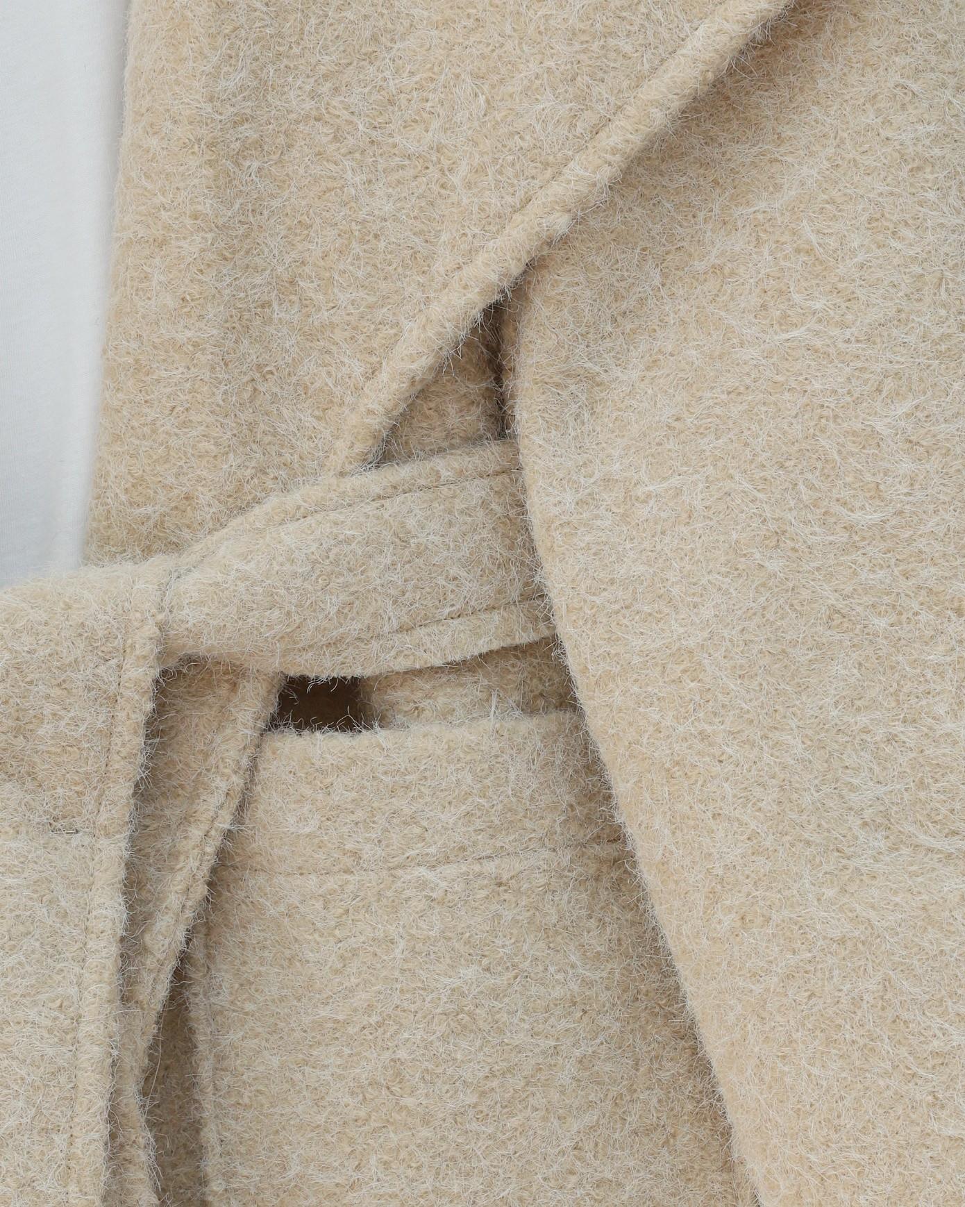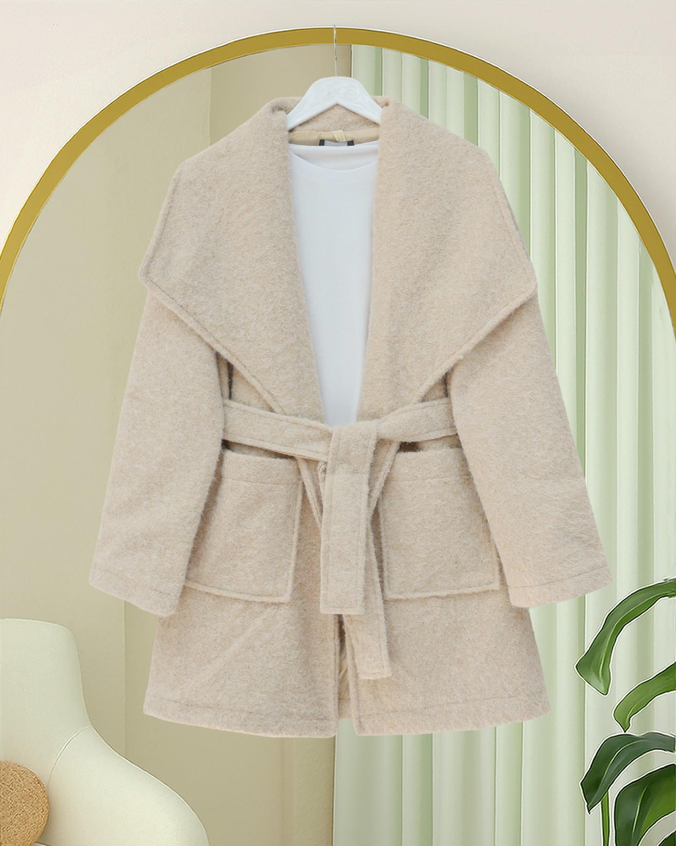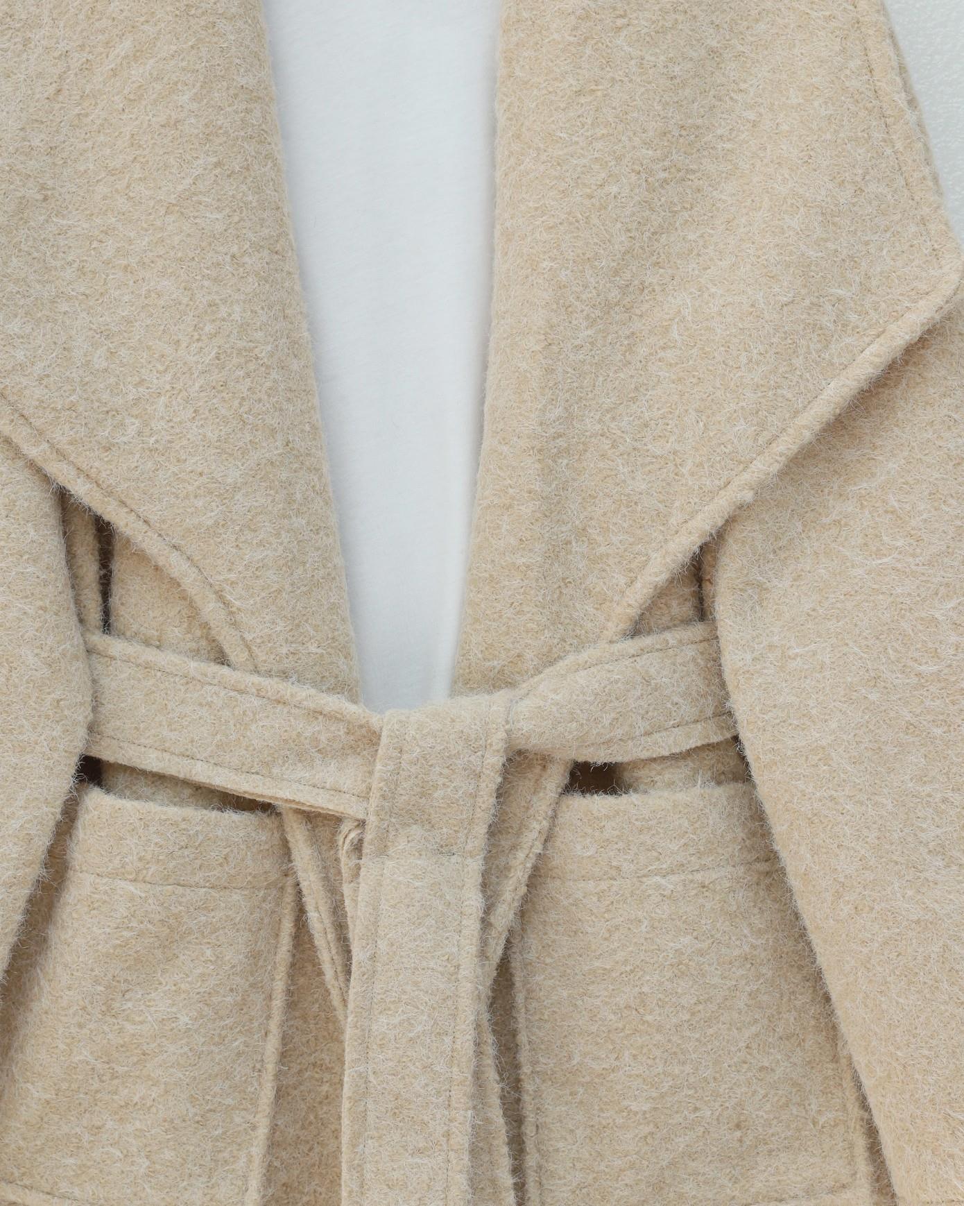 Geniş Yakalı Beli Kemerli Cepli Kaşe Kaban -Bej (398-99002-R56)