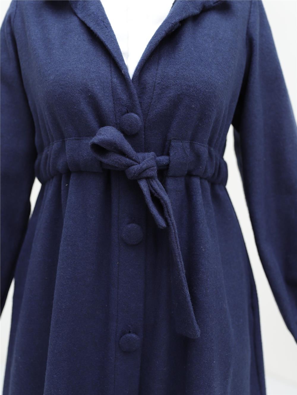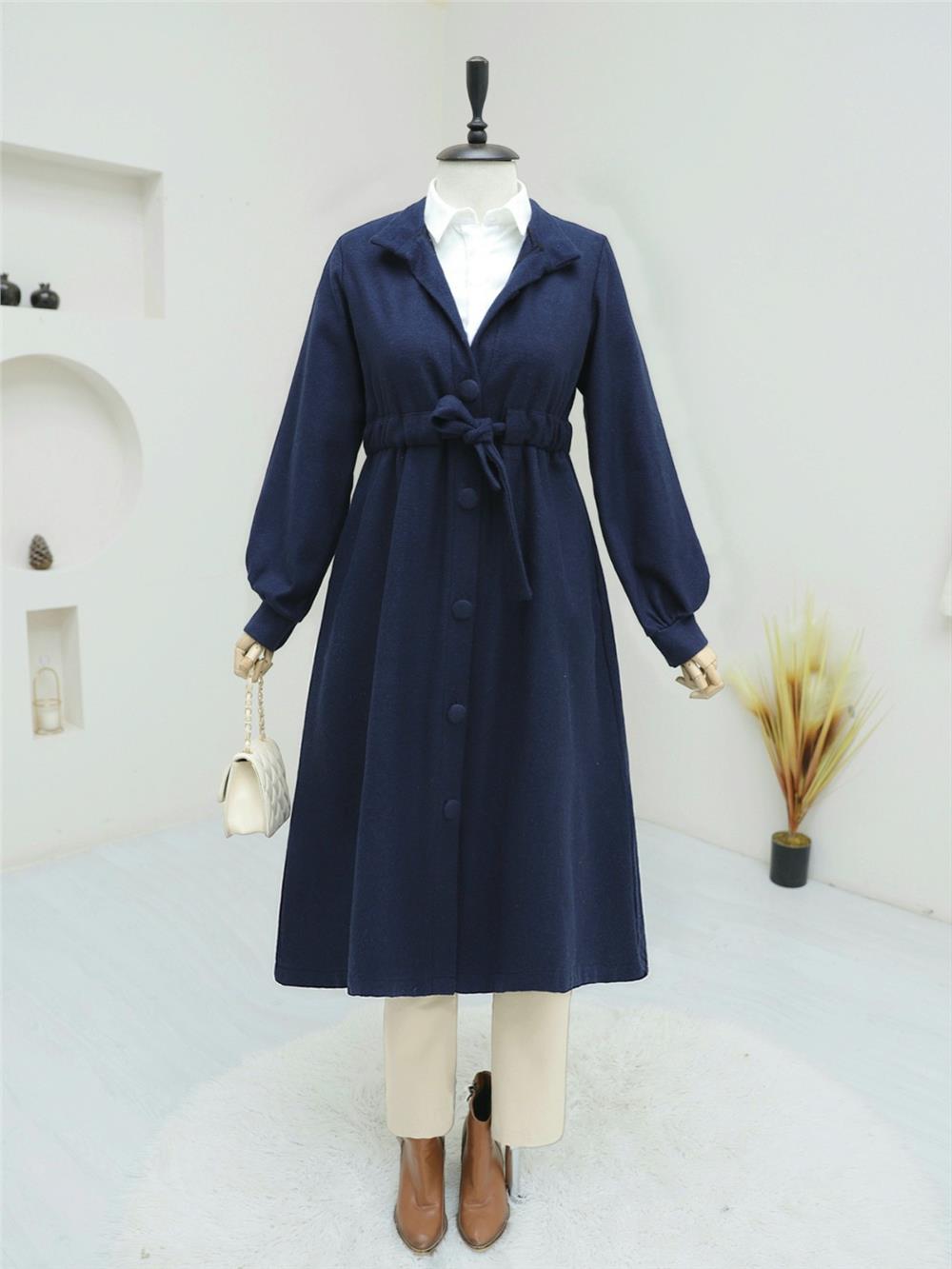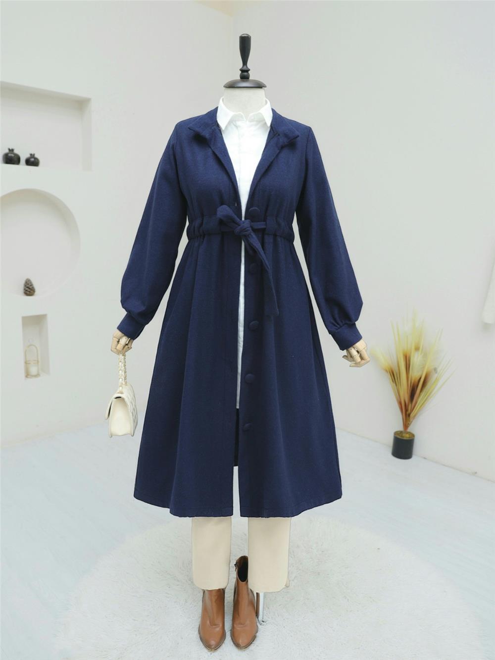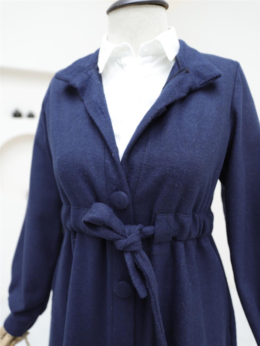 معطف برباط وياقة رائعة - أزرق داكن (347-8003-R03)