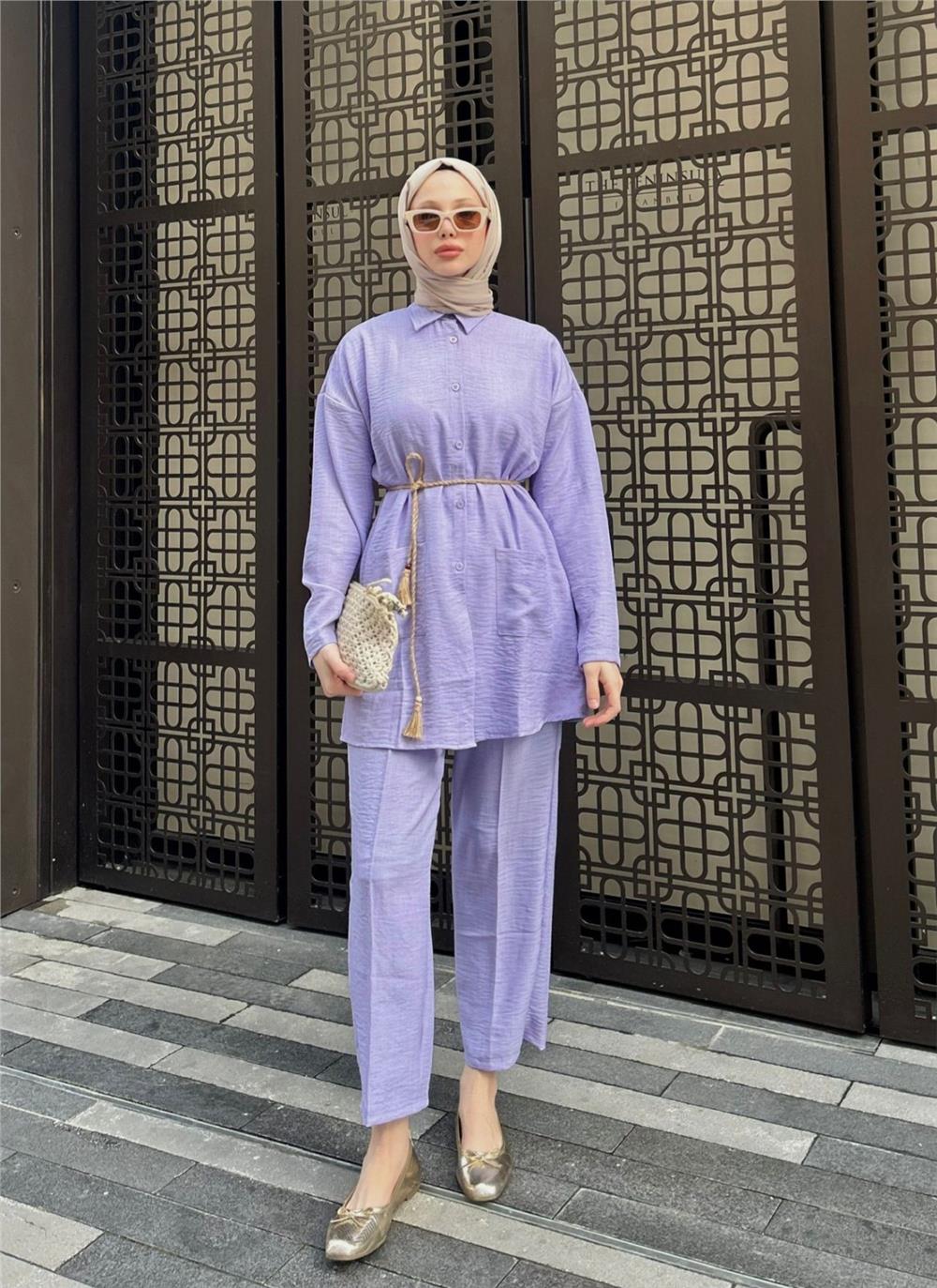 بدلة كتان بجيب حزام ويكر - ليلكي (218-361--R42)