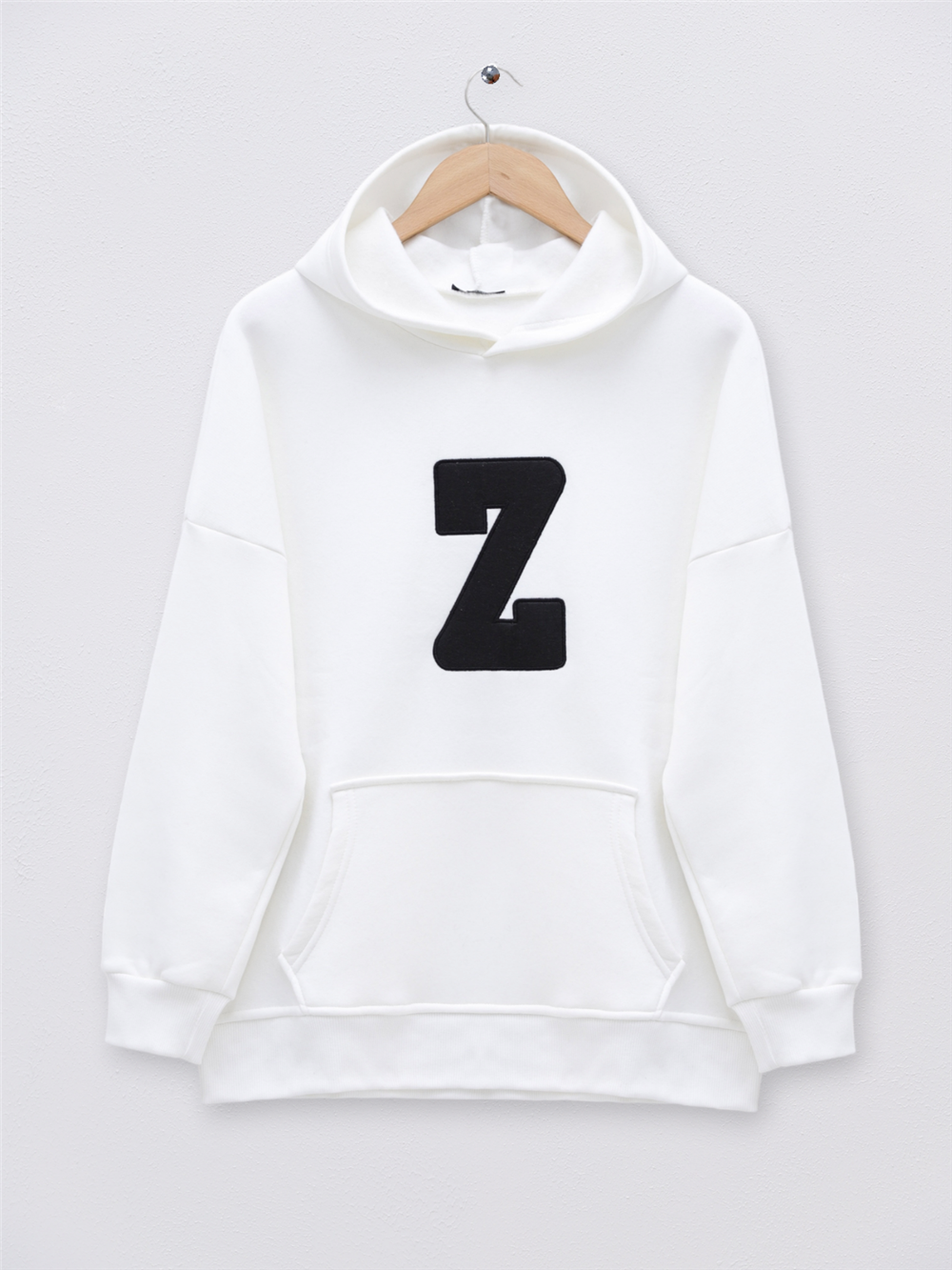 Kanguru Cepli Armalı Kapşonlu Polar Sweat -Beyaz (357-3056-R02)