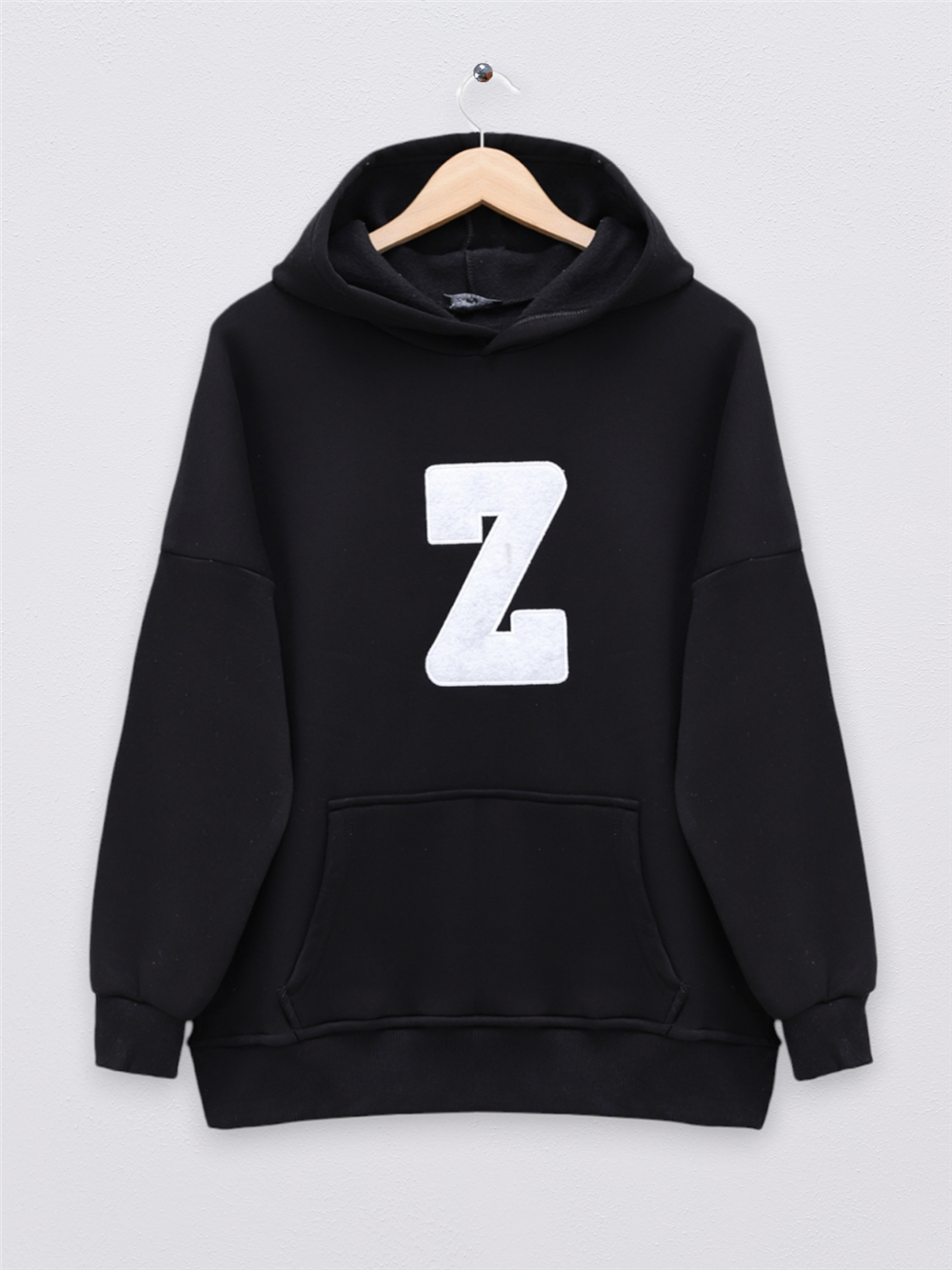 Kanguru Cepli Armalı Kapşonlu Polar Sweat -Siyah (357-3056-R01)
