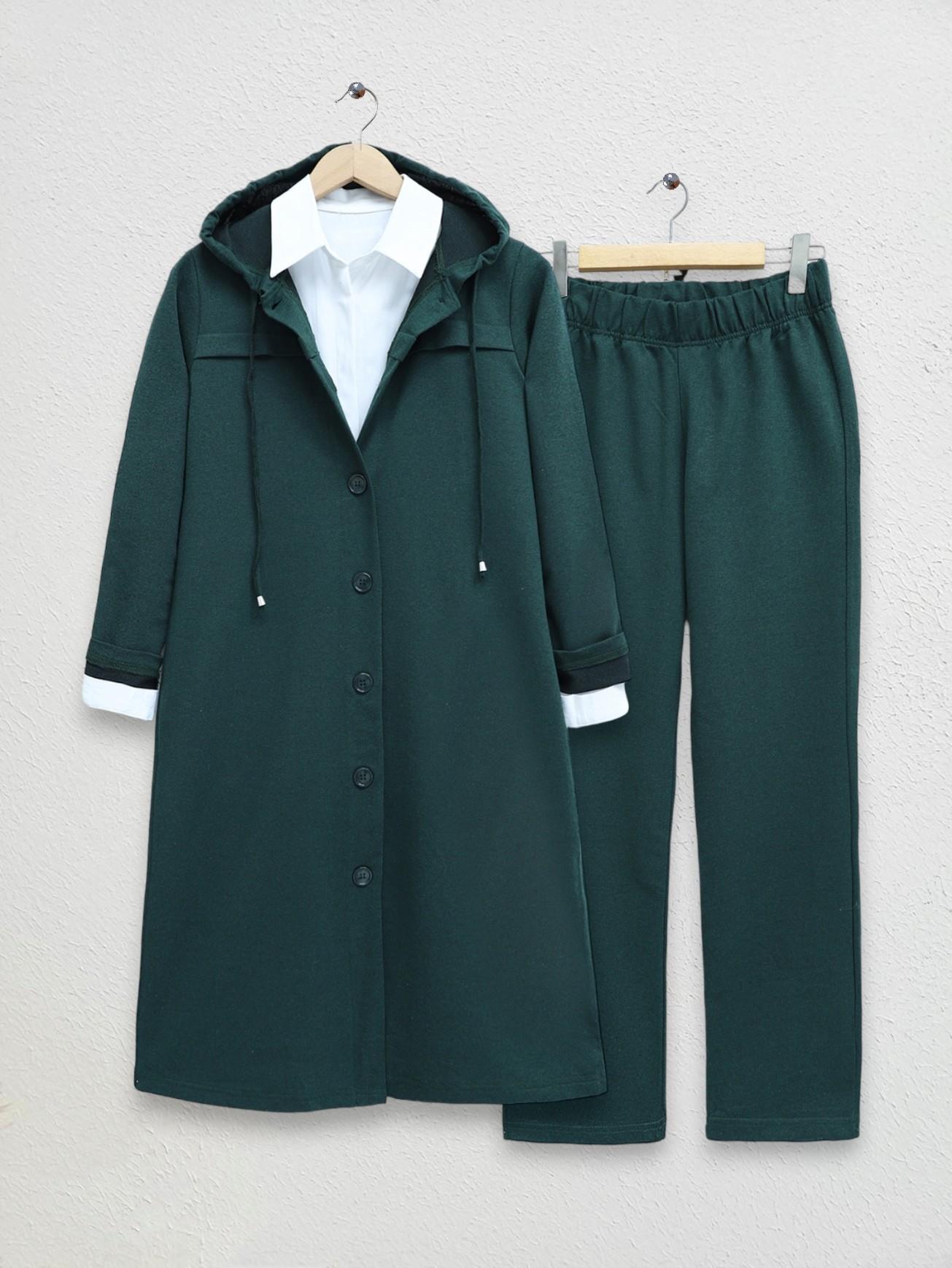 بدلة مزدوجة بأزرار وغطاء للرأس - زمرد (332-3072-R17)