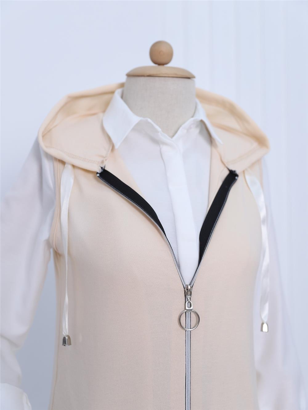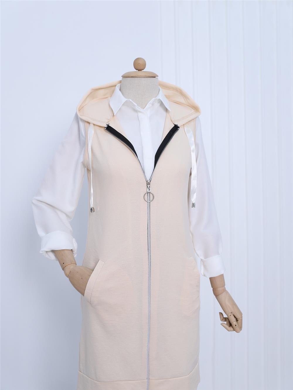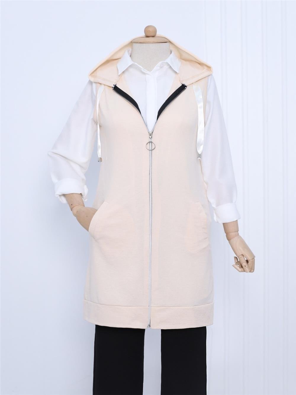 Kapşonlu Penye Yelek -Krem (222-6703-R28)