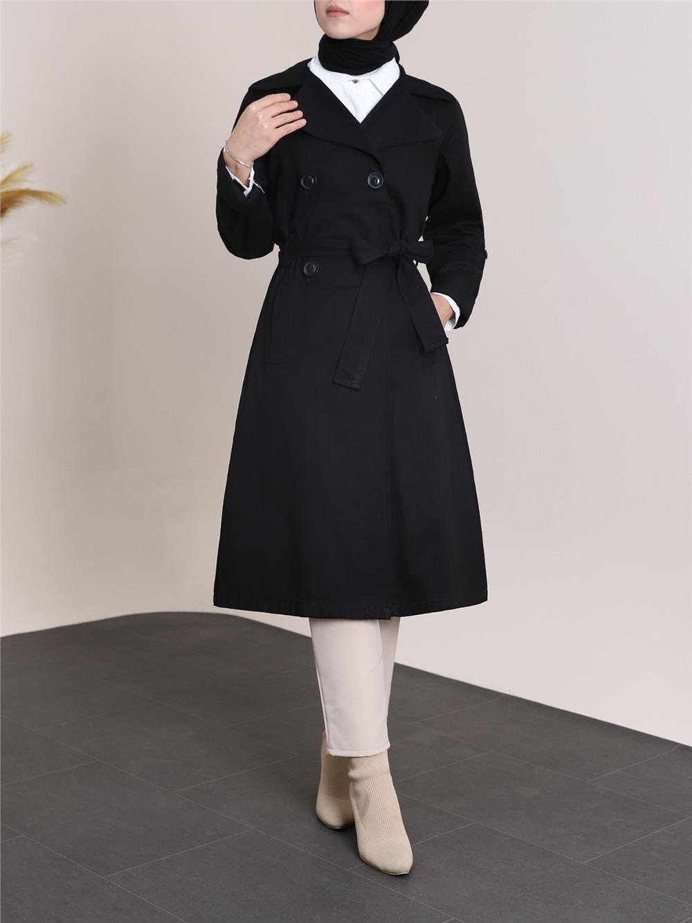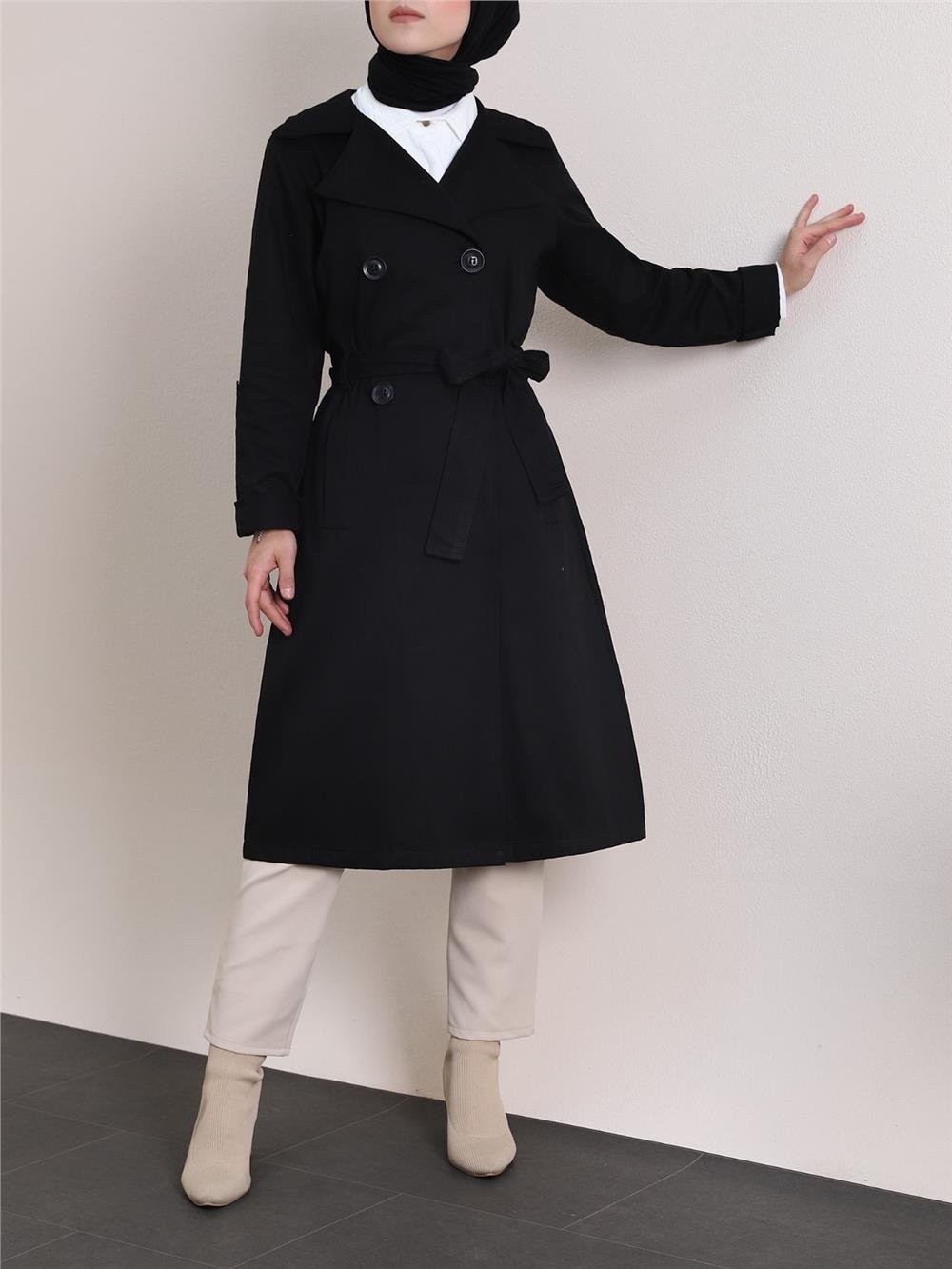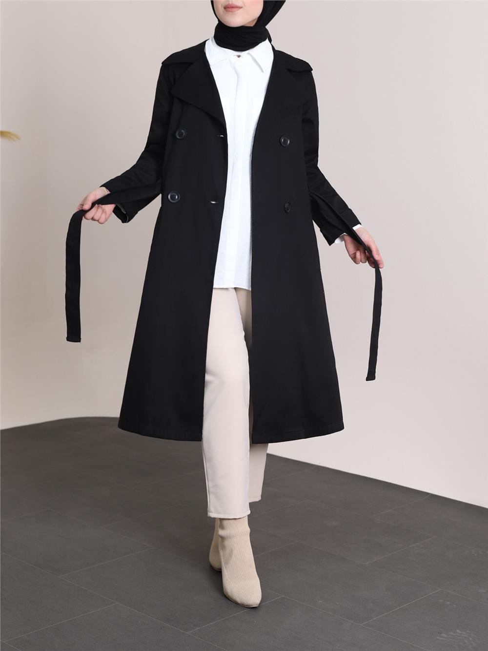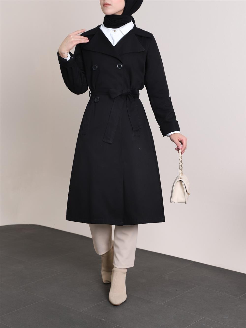 معطف واق من المطر بأزرار وأكمام مطوية - أسود (148-2456-R01)