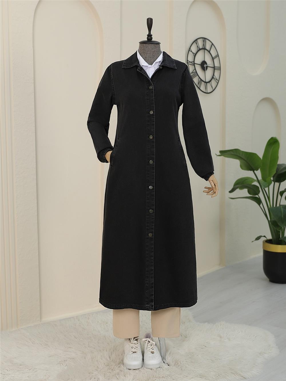 كاب من الدينيم بأكمام وأزرار مطاطية - أسود (197-7911-R01)