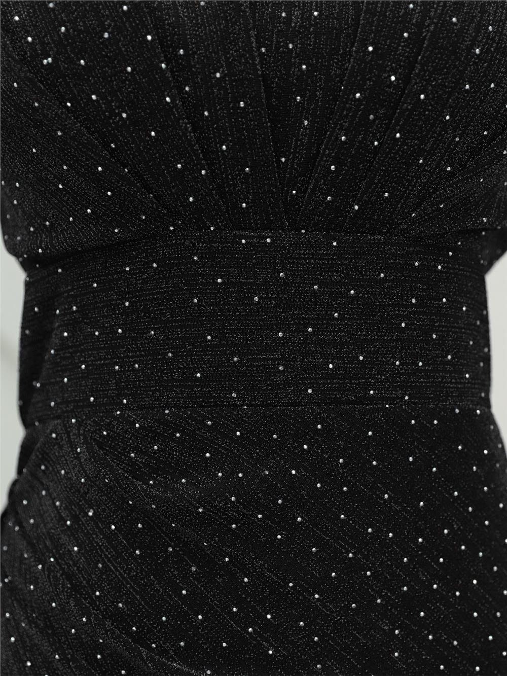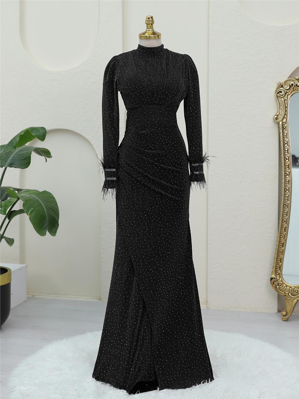 Kolu Tüylü Önü Çift Kuyruklu Abiye -Siyah (316-4696-R01)