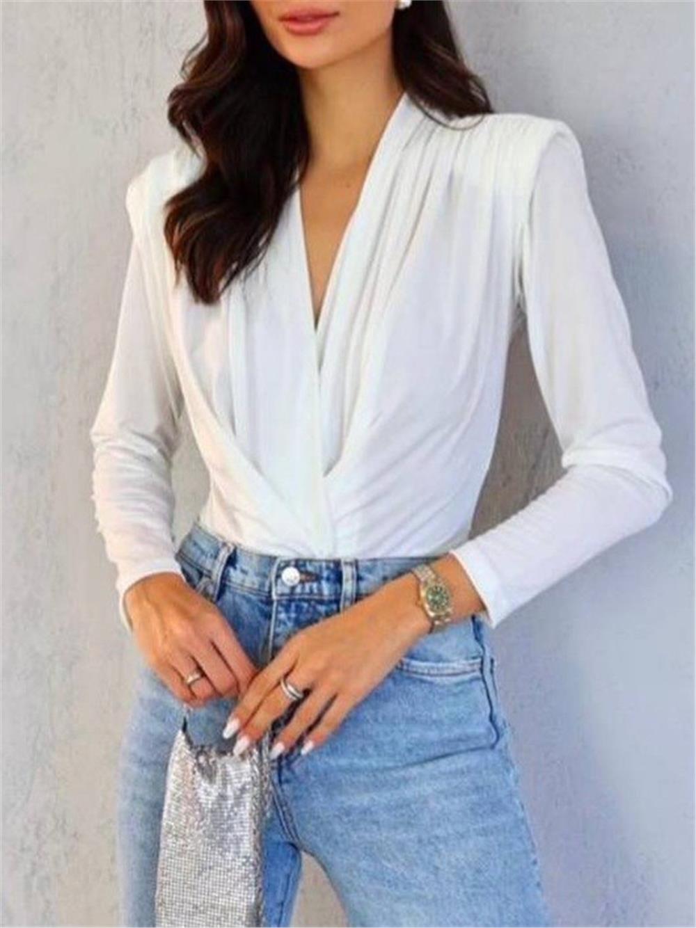 بدلة ليكرا سيندي مبطنة مزدوجة الصدر - أبيض (361-353-R02)