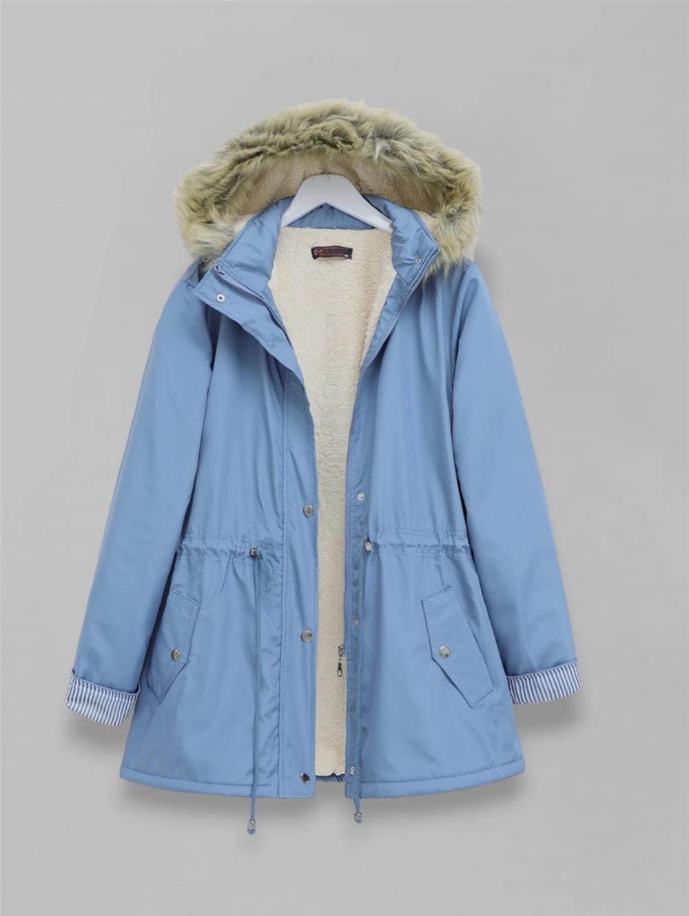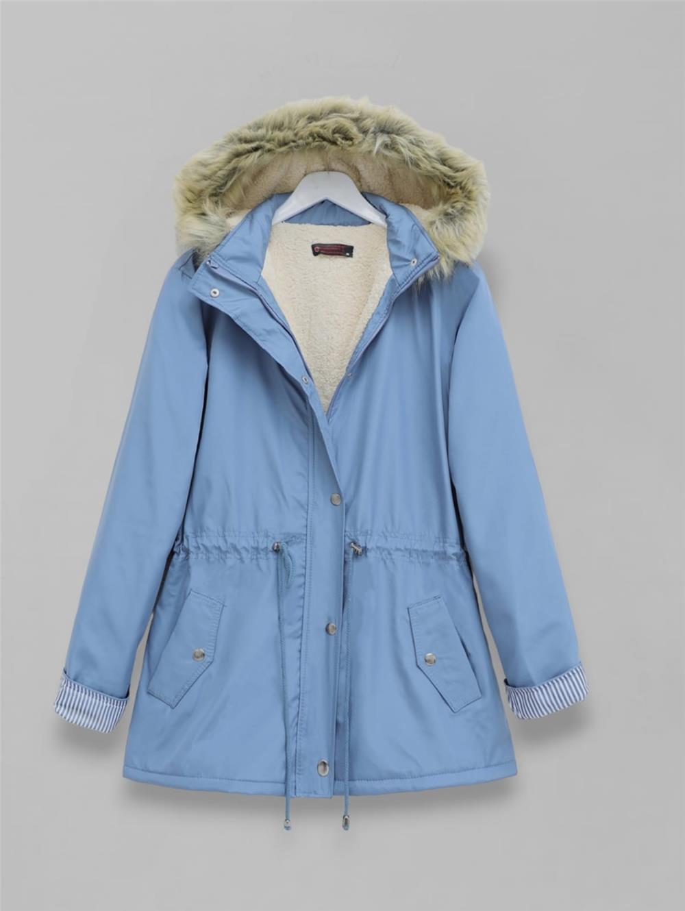 معطف فروي بغطاء للرأس مع قطيفة من الداخل - أزرق (148-2239-R31)