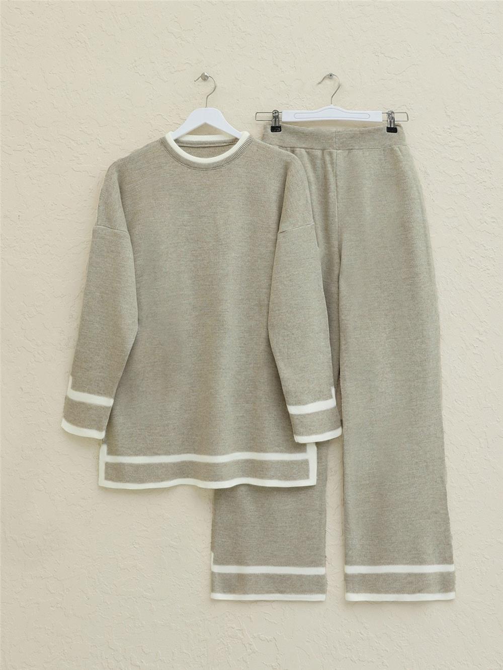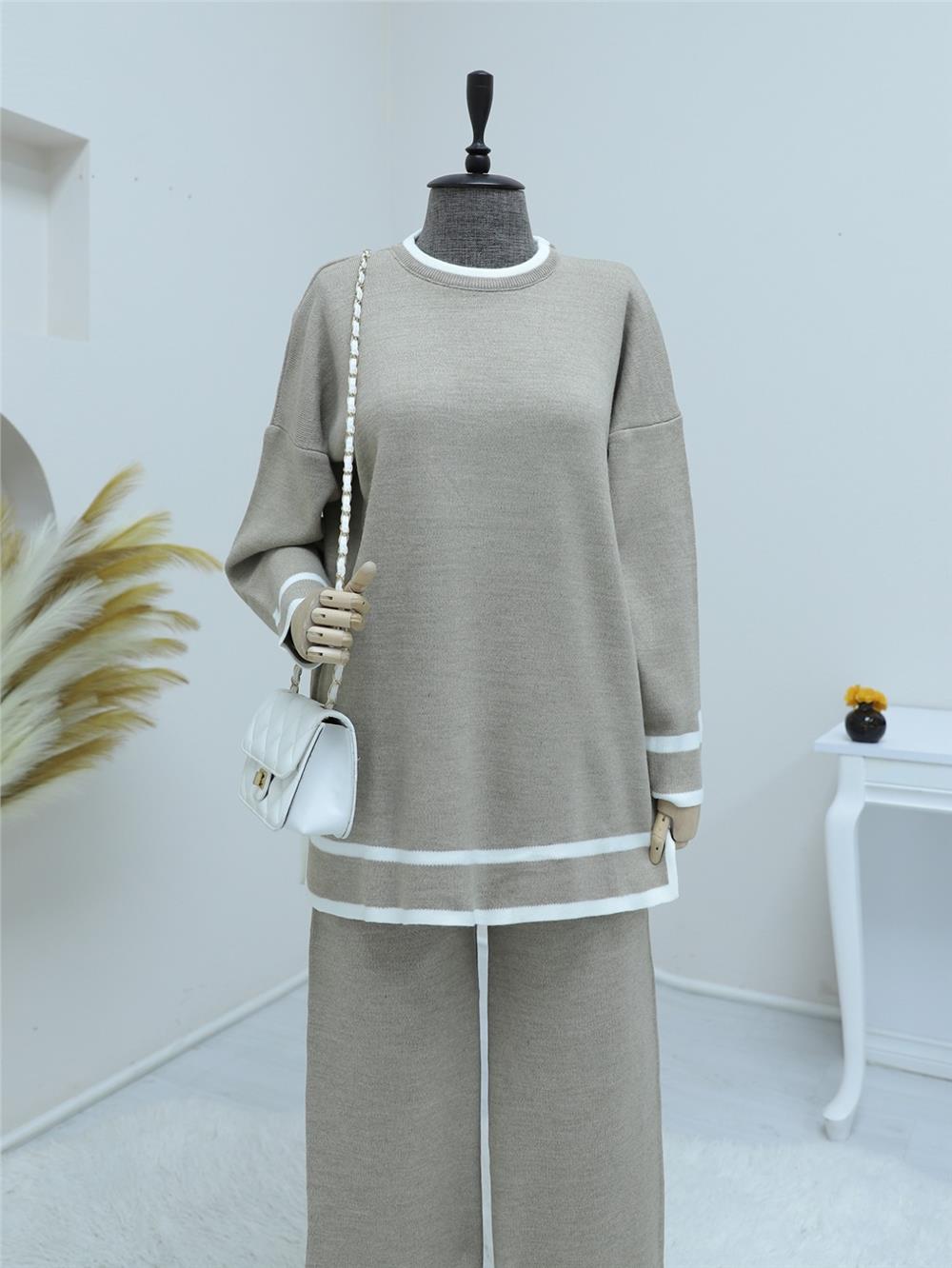 طقم تريكو مزدوج بأساور مخططة -مينك (384-317-R23)