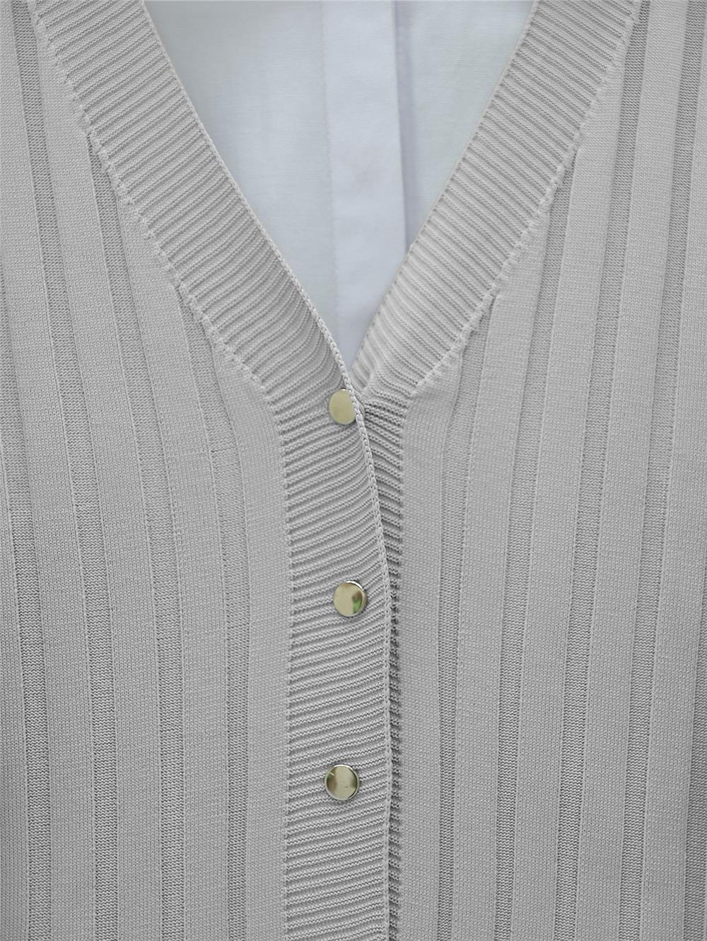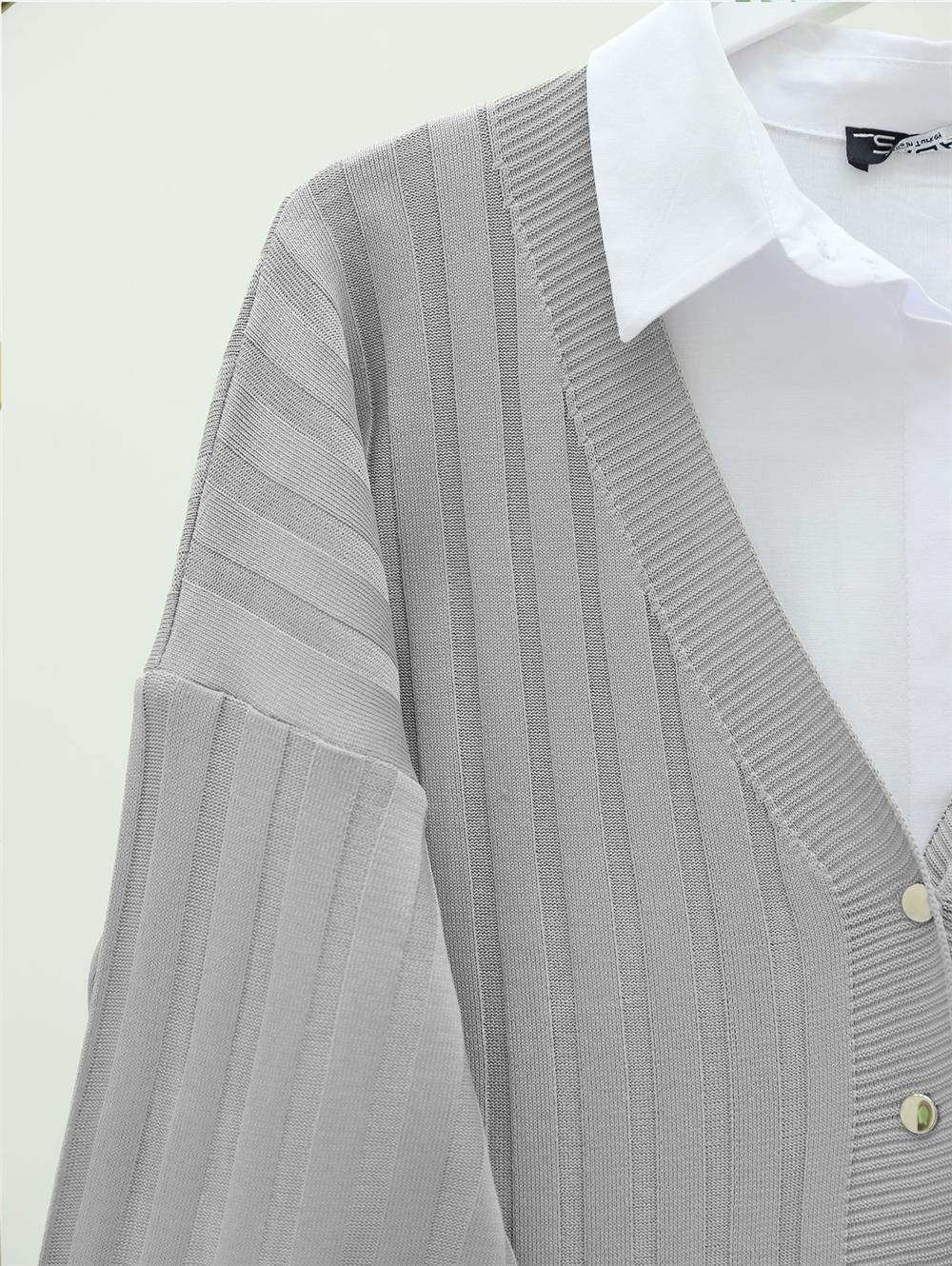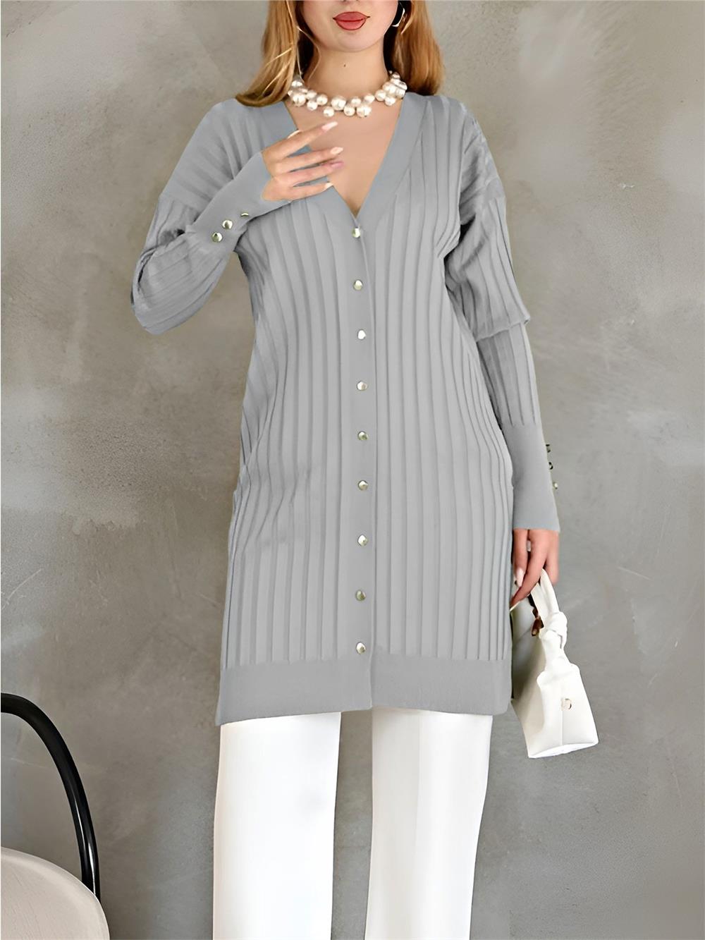 Metal Düğmeli Yırtmaçlı Triko Hırka -Gri (280-3179-R11)