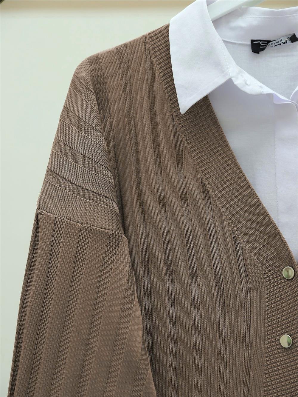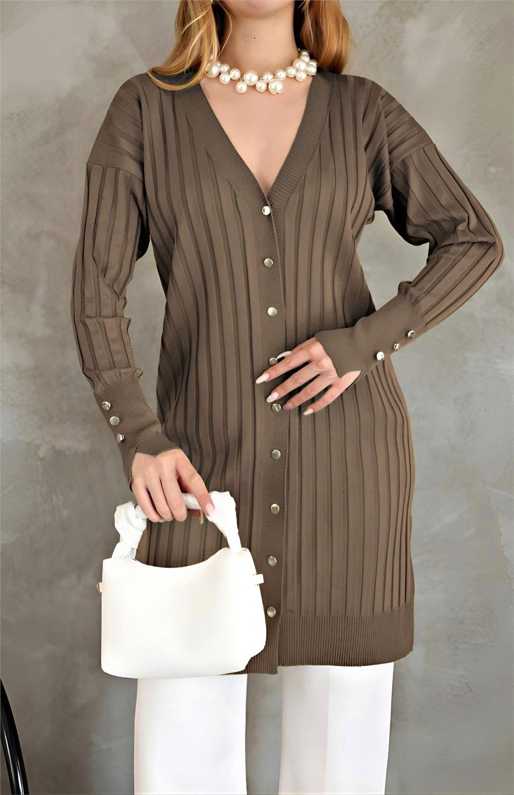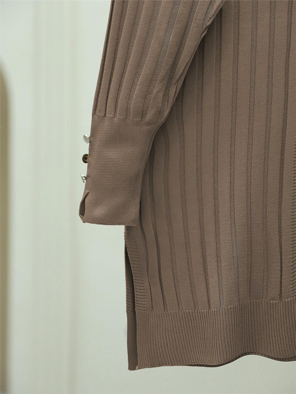 Metal Düğmeli Yırtmaçlı Triko Hırka -Kahve (280-3179-R15)