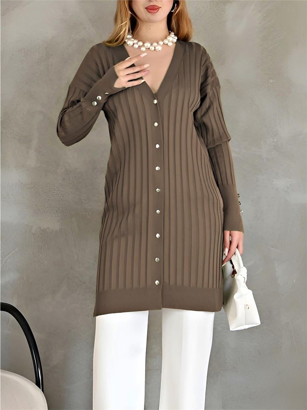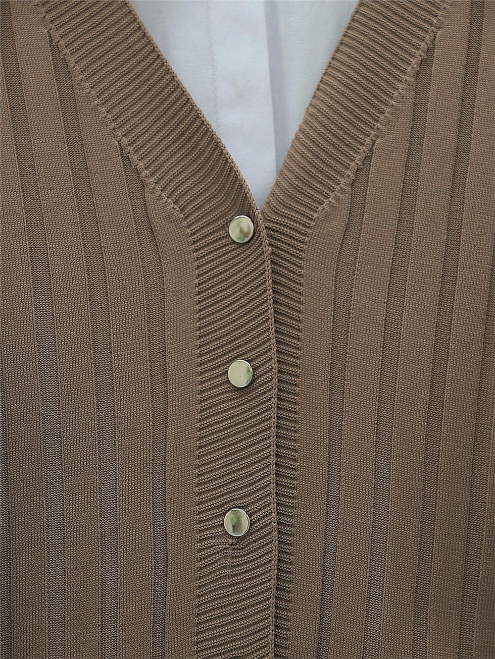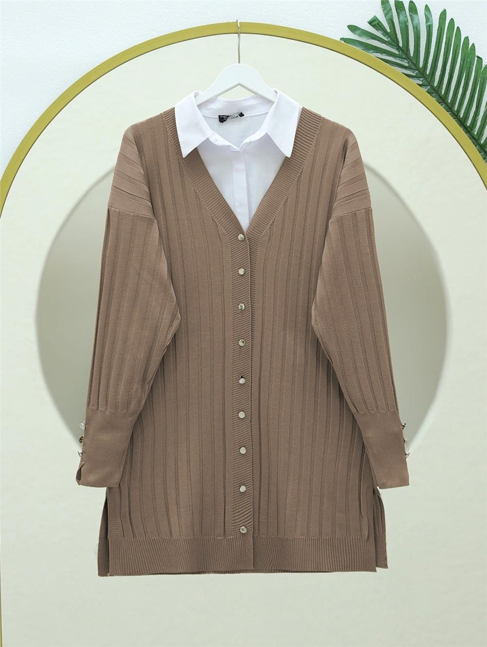 Metal Düğmeli Yırtmaçlı Triko Hırka -Kahve (280-3179-R15)