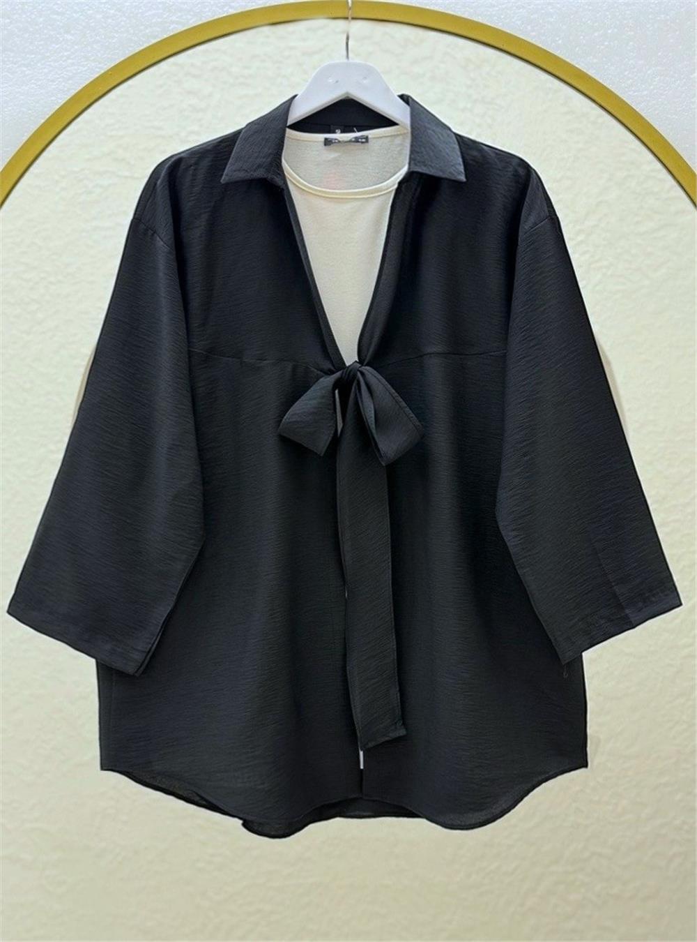 كيمونو صيفي مربوط من الأمام - أسود (120-0062-R01)