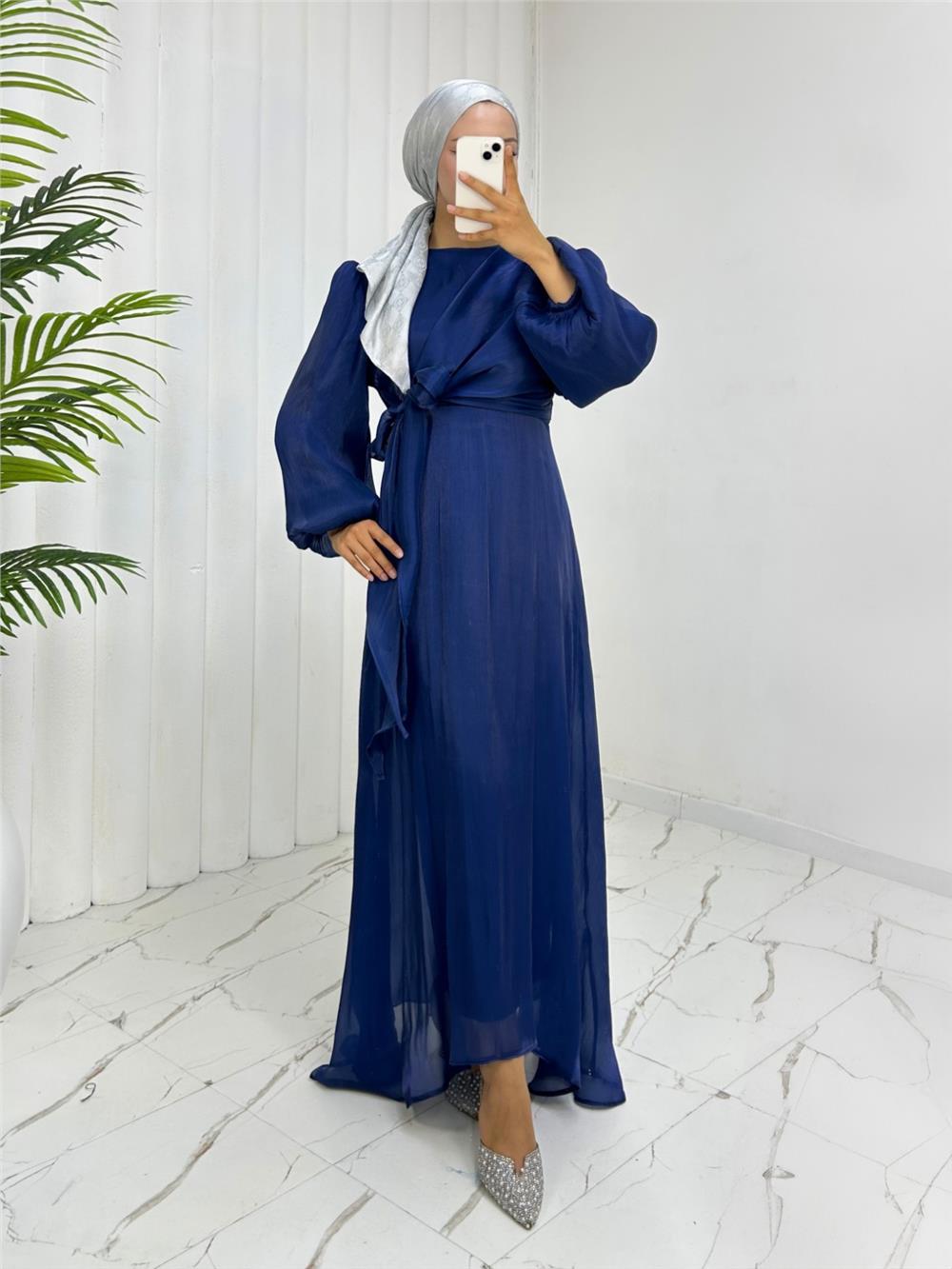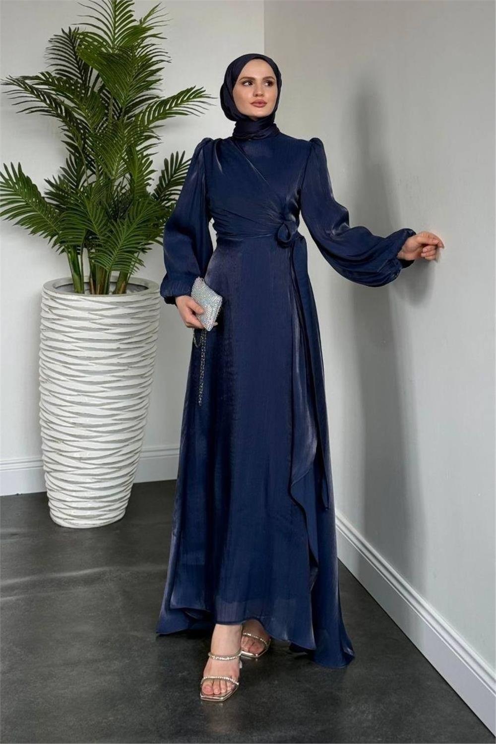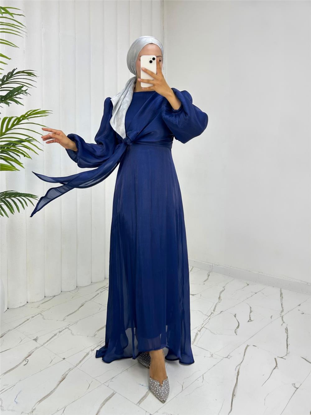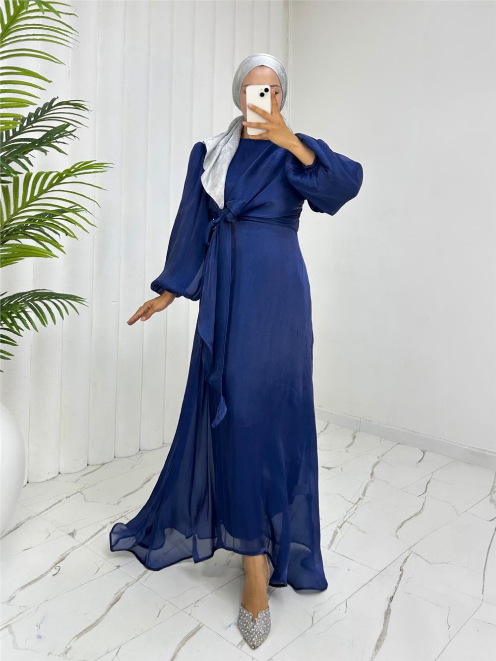 Önden Çapraz Bağlama Detaylı Janjan Kumaş Elbise -Laci (386-6219-R03)