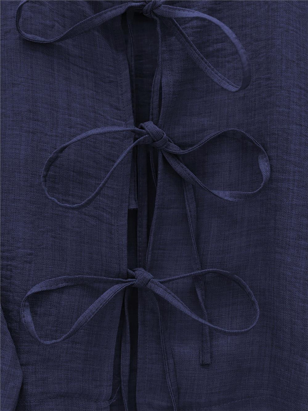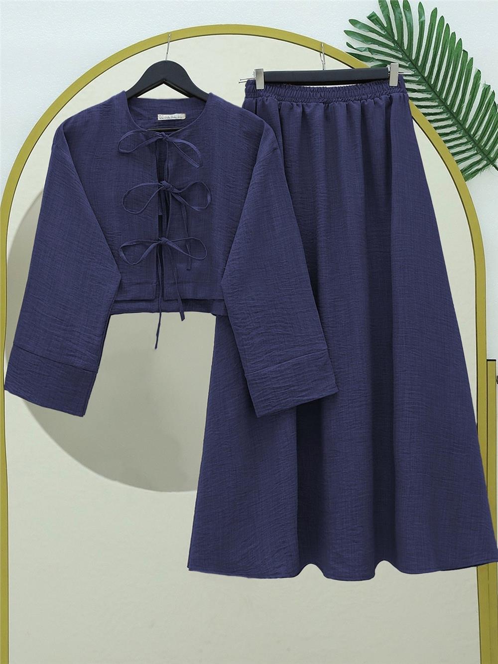 Önü Bağcıklı Beli Lastikli Etekli Keten Takım -Laci (346-30421-R03)