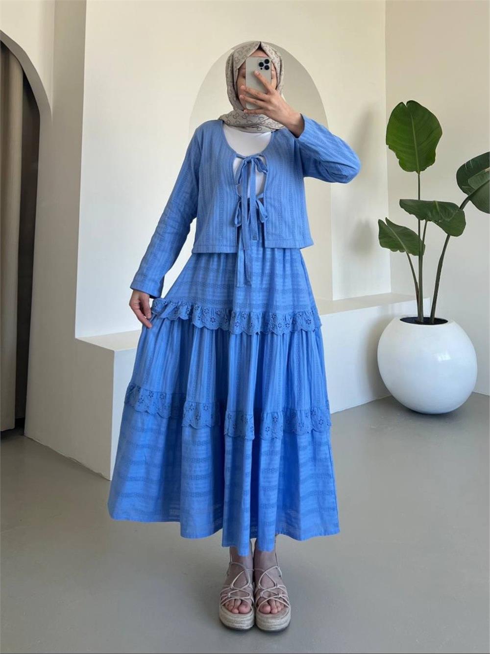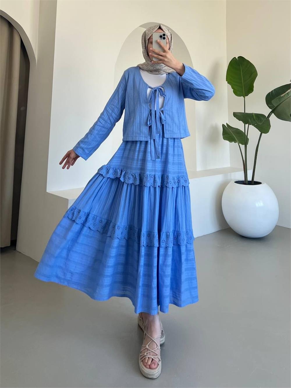 Önü Bağlamalı Fistolu Etekli Takım -Mavi (144-3012-R31)