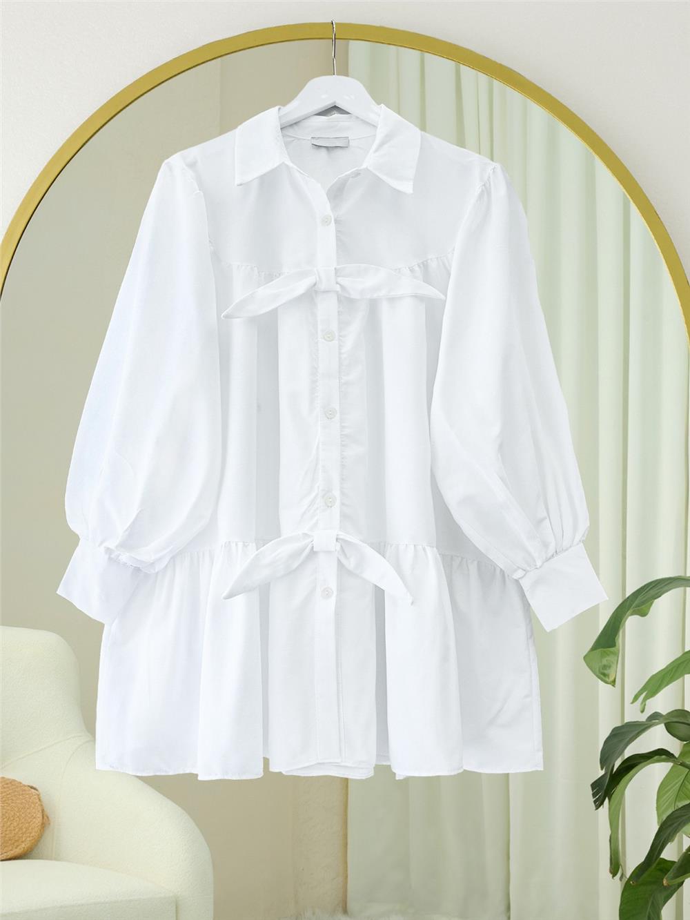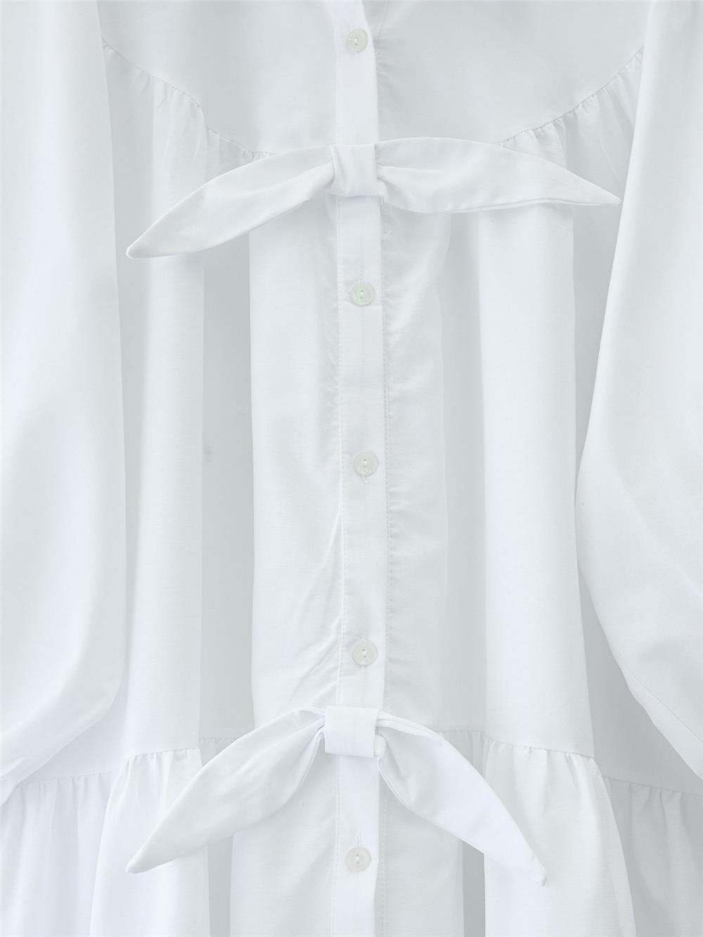 قميص كاجوال بأزرار أمامية مع تفاصيل شريط - أبيض (223-6263-R02)