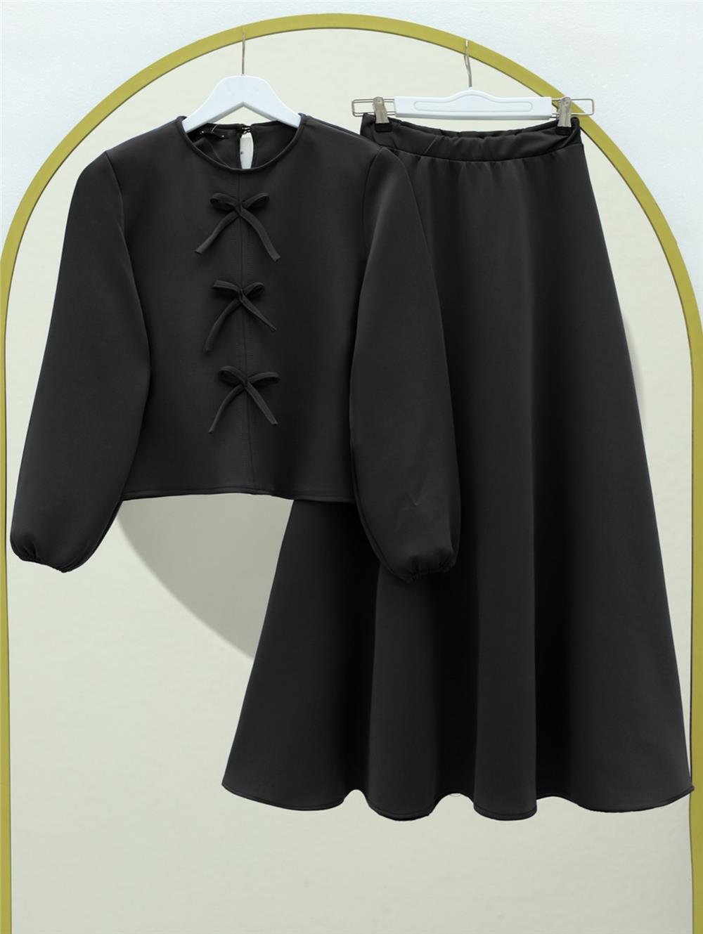 Önü Fiyonk Detaylı Etekli Scuba Takım -Siyah (349-6058-R01)