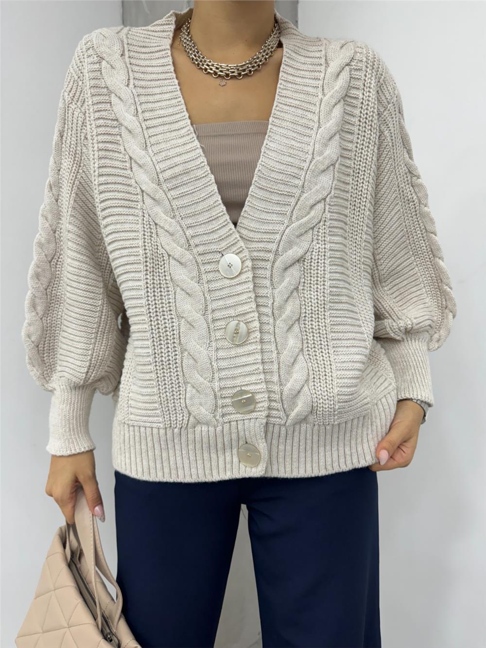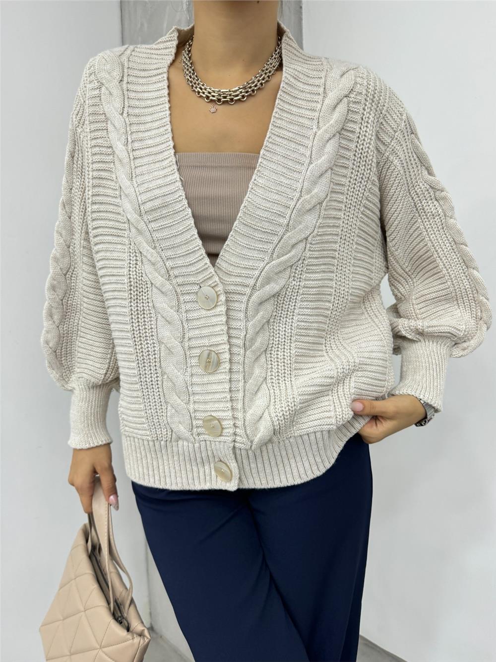 محبوك نمط سترة العربوي بأزرار -الحجر (384-500-R43)