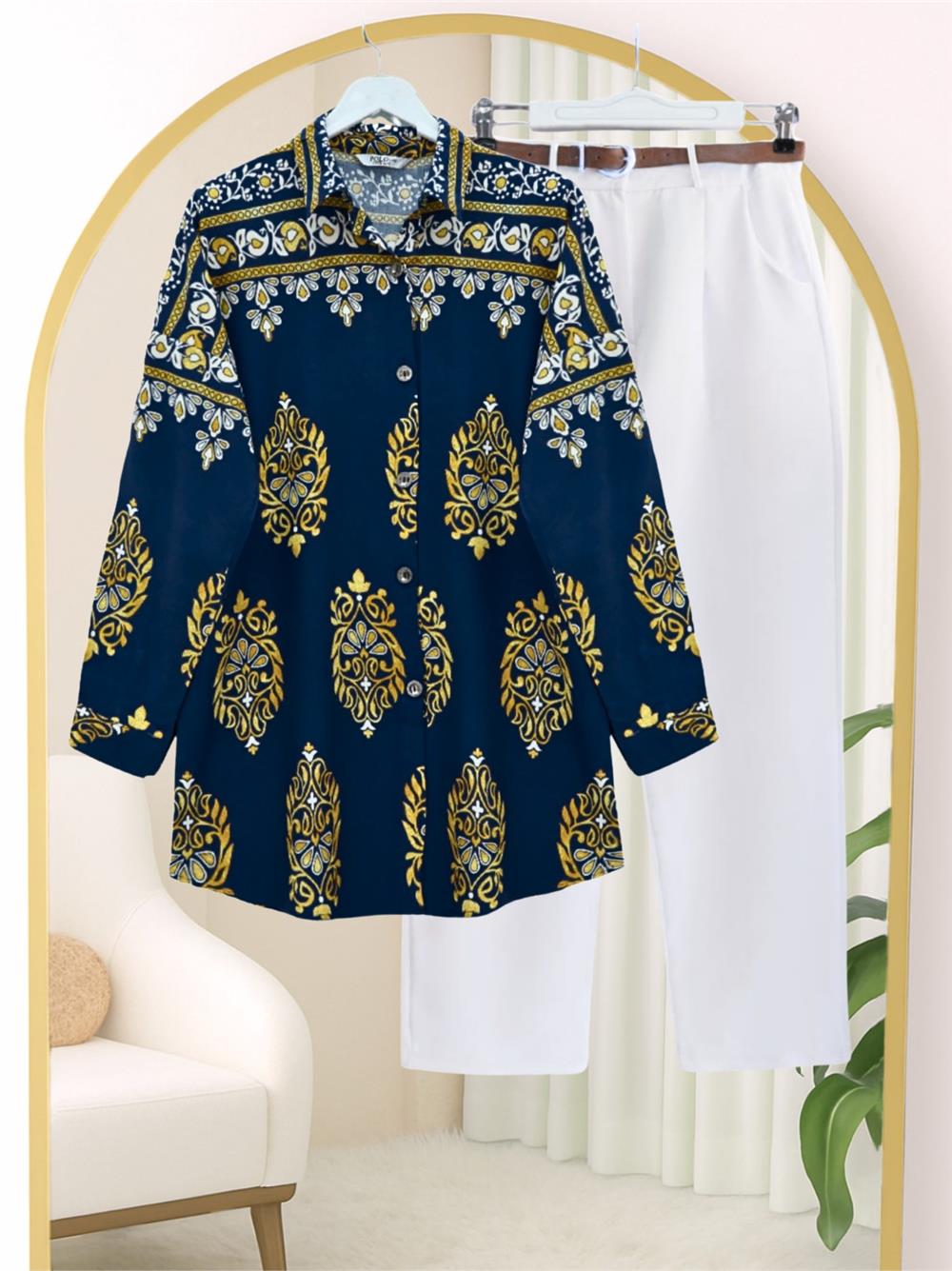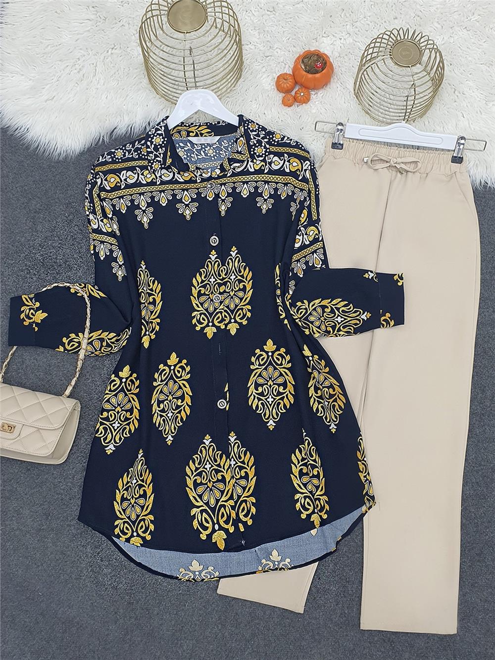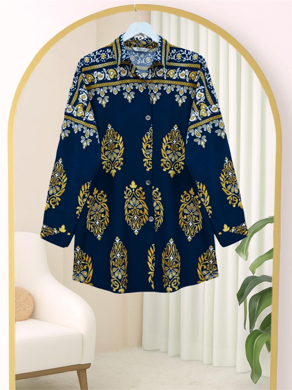 Oval Kesim Boydan Düğmeli Viskon Tunik -Laci (199-2043-R03)
