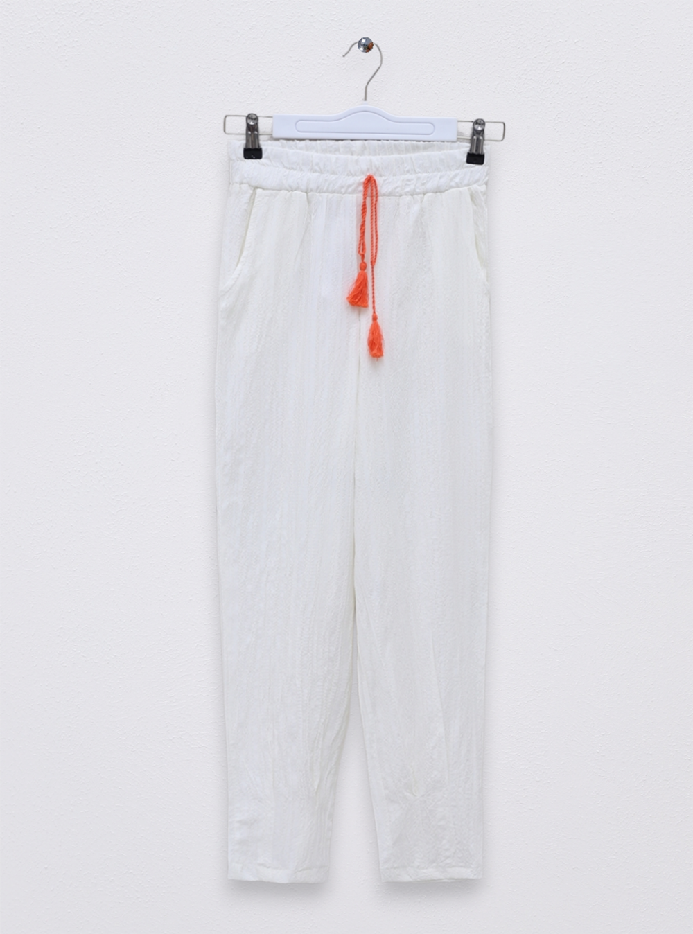 Paçası Pens Dikişli Bağcık Detaylı Pantolon -Beyaz (246-5272-R02)