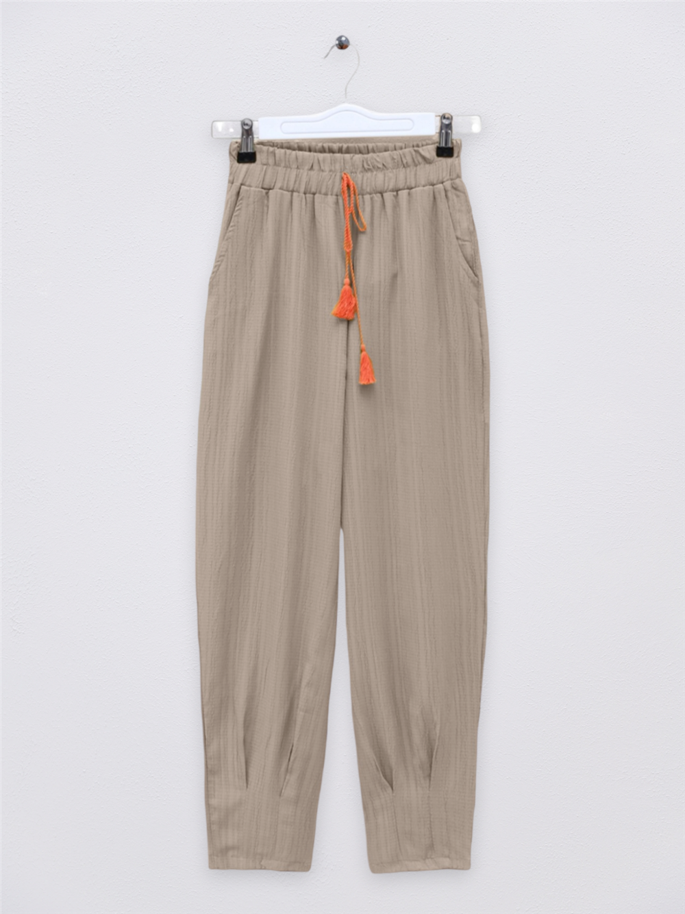 Paçası Pens Dikişli Bağcık Detaylı Pantolon -Vizon (246-5272-R23)