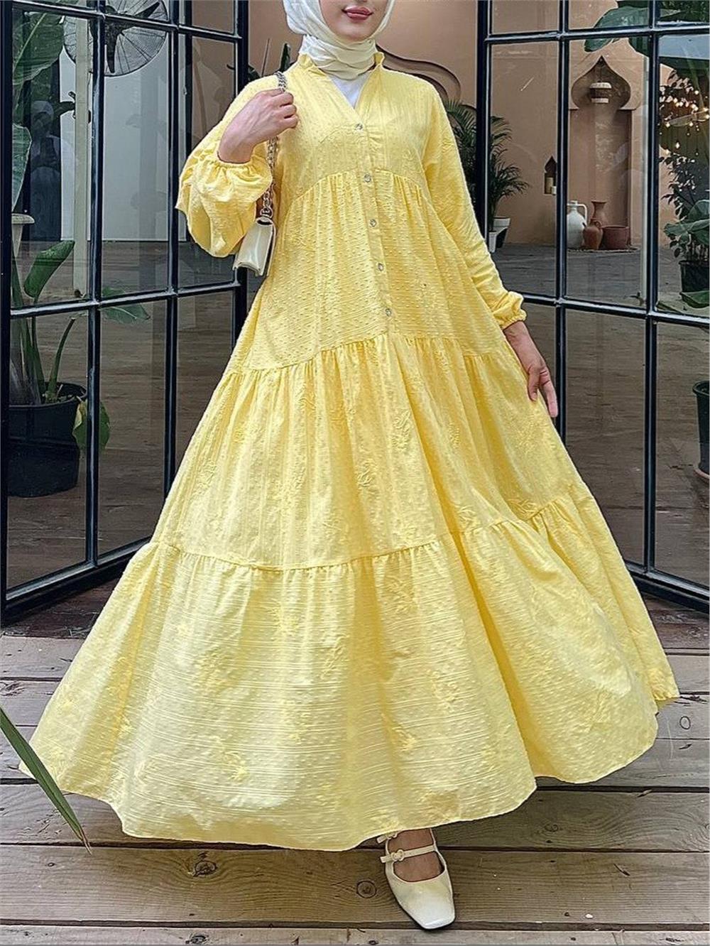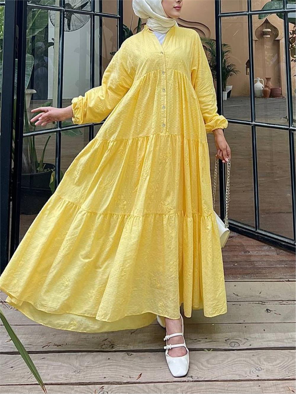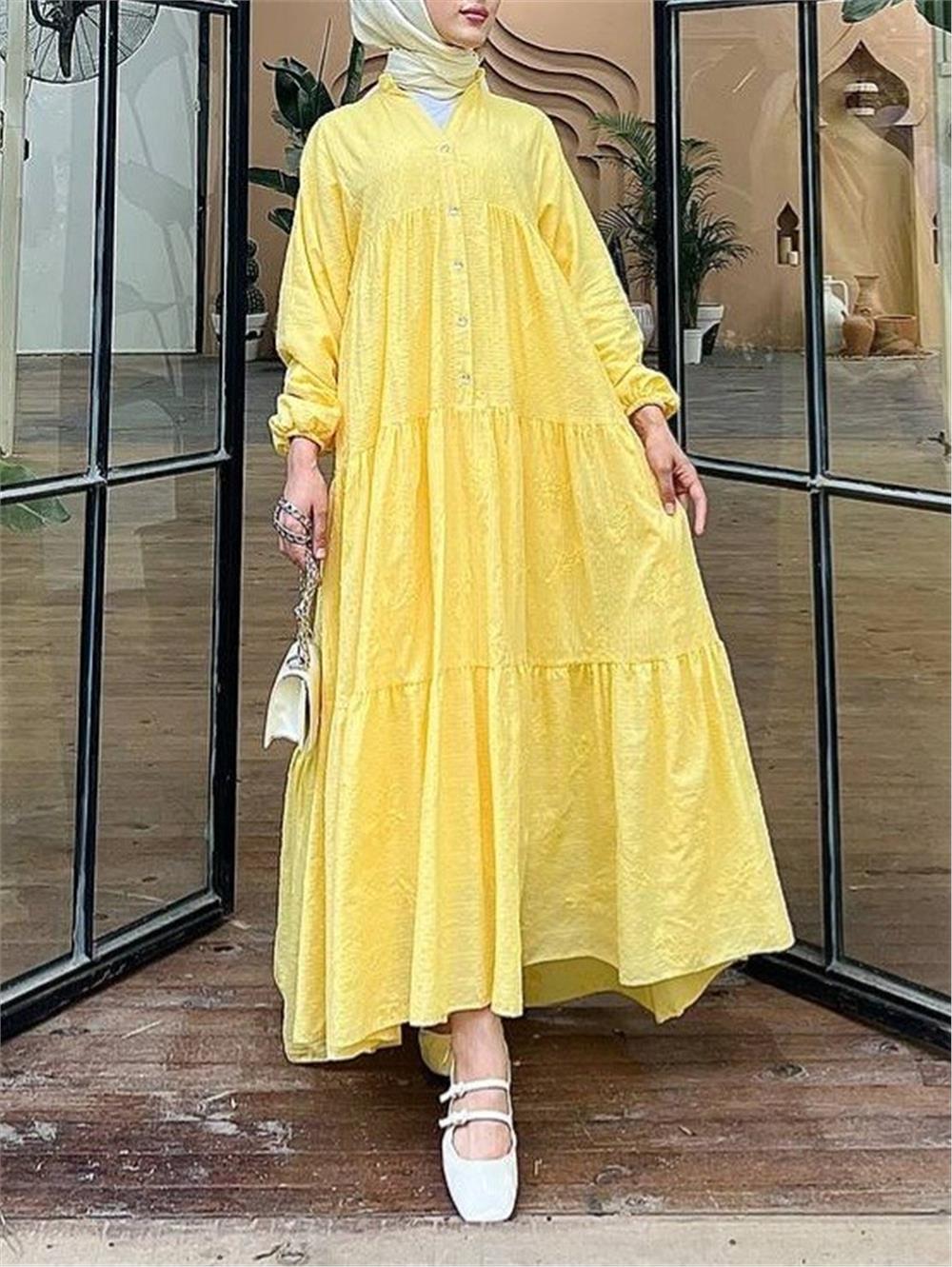Parçalı Düğme Detaylı Elbise -Sarı (144-1000-R22)