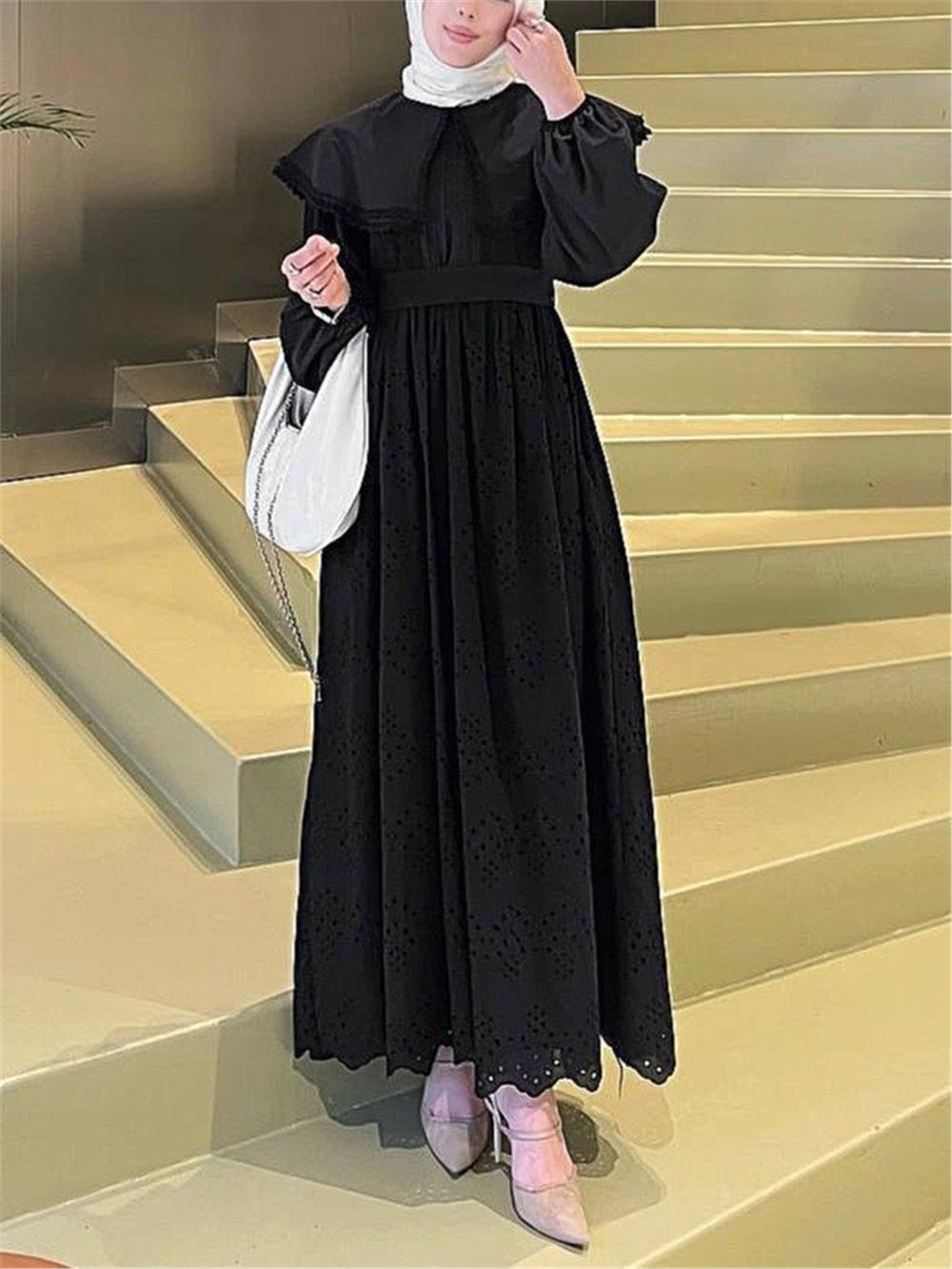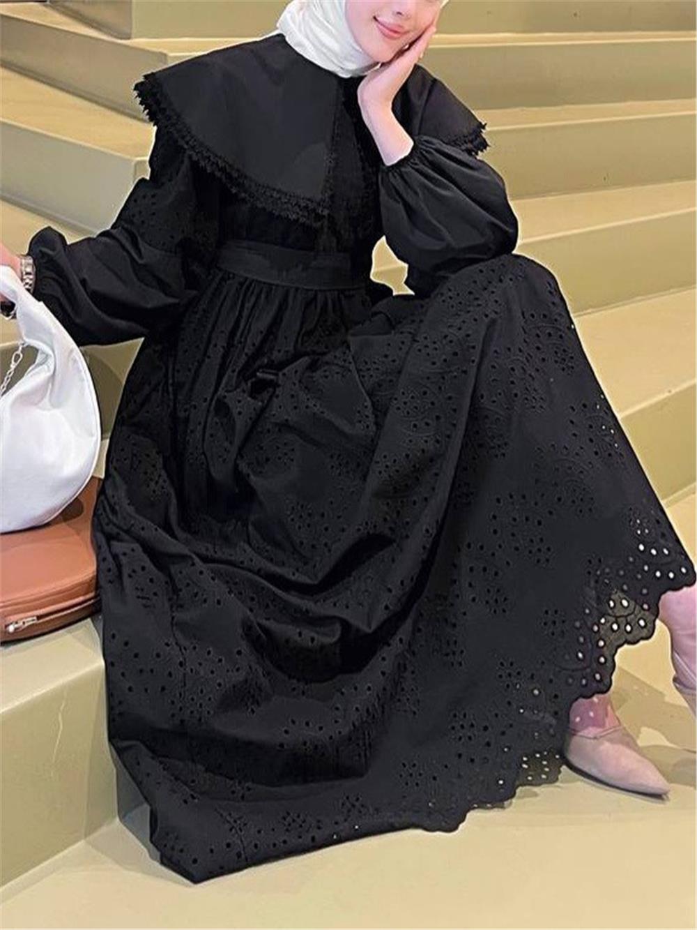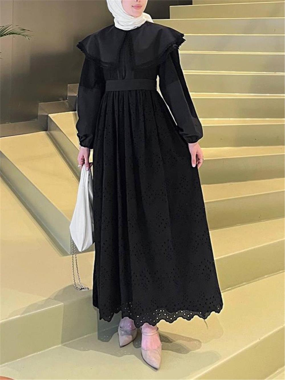 Pelerin Yaka Dantel Detaylı Elbise -Siyah (144-1421-R01)