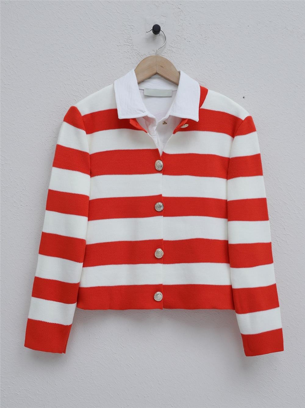 كارديجان رينجيلي قصير بأزرار معدنية - زهرة الرمان (109-1032-R40)